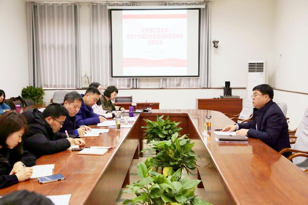 12月29日下午,院(校)长刘瑞明为机关第三党支部全体党员和入党积极分子进行学习贯彻党的十九届五中全会精神专题党课。