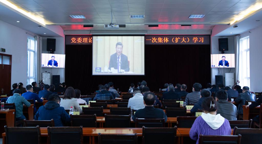 3月4日,院校党委理论学习中心组举行2021年第一次集体(扩大)学习。党委书记温锋科主持学习,中心组成员、全体副处级(含助理)以上干部参加。