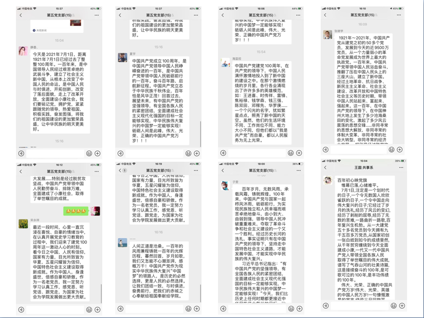 大家纷纷表示,要深入学习贯彻习近平总书记重要讲话精神,将学习党史、继承发扬伟大建党精神与立德树人根本任务相结合,不负时代,不负韶华,为院校发展贡献力量。