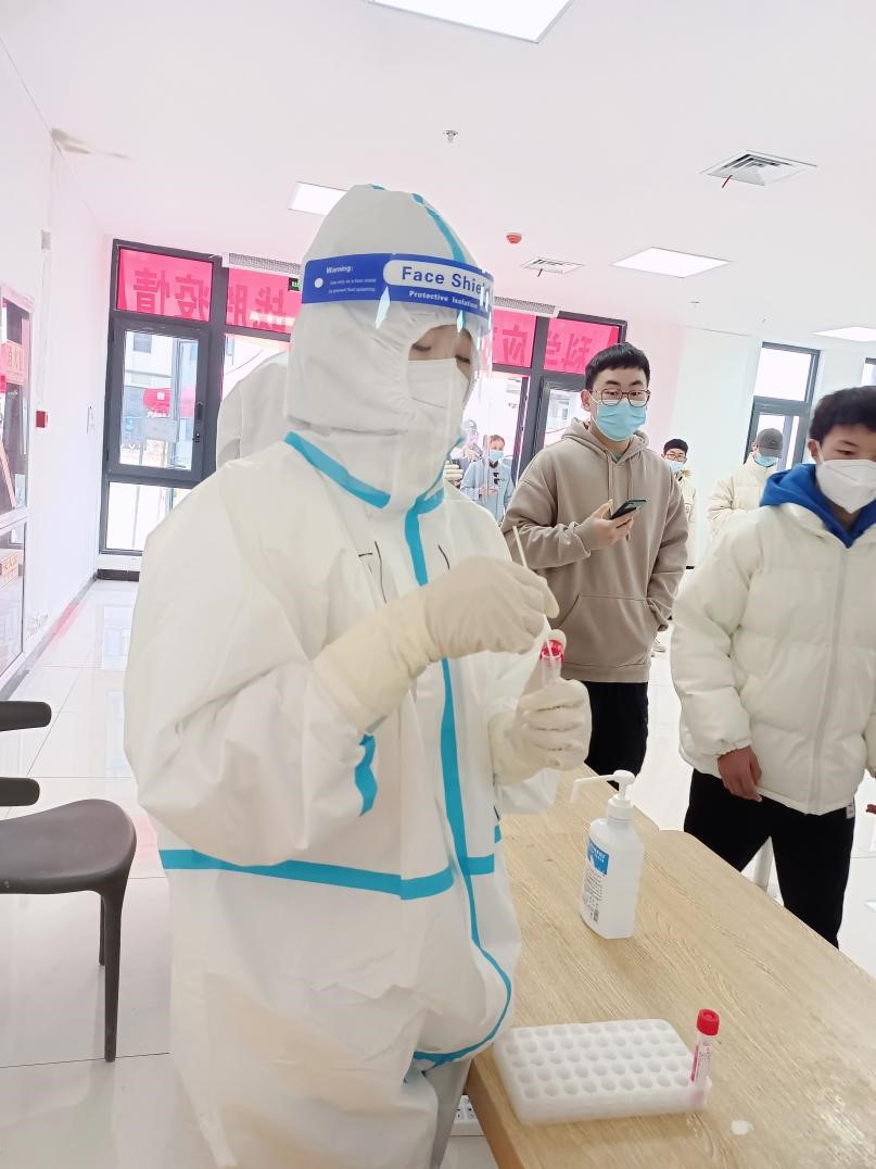 根据学院疫情防控工作具体安排,团委下属各学生组织的68名志愿者分为5组:核酸检测组具体负责配合医护人员完成信息核验、秩序引导等工作;宿舍楼检查组、餐厅督察组分别负责在各宿舍楼门口、餐厅检查学生出入证,并提醒佩戴口罩、添加衣物等具体事项;超市秩序维护岗负责超市人流控制、提醒保持安全距离、佩戴口罩等;机动组负责核酸检测期间主干道秩序维护工作。各系志愿者具体负责本系学生用餐服务保障、宿舍各楼层督查以及宿舍常态化消杀等具体工作。