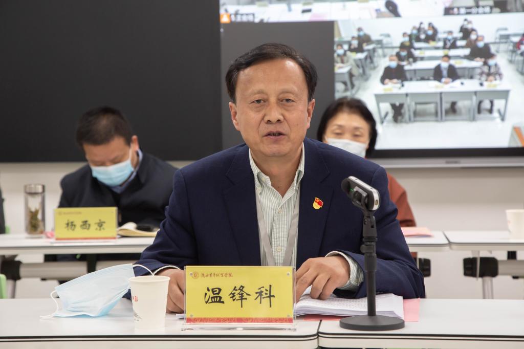 温锋科指出,2021年全体干部职工坚持以习近平新时代中国特色社会主义思想为指导,坚持党的全面领导,履行意识形态主体责任,把好办学治校方向,学史力行改进作风,履行全面从严治党主体责任。全力加快新校区建设,积极推进老校区提升改造;防疫、抗疫、战疫,维护师生生命健康和校园安全稳定;坚持全面抓、抓全面,立德树人与意识形态、教育教学与学生管理、政务服务与后勤保障、疫情舆情与安全稳定以及攻坚克难重点任务平稳顺利。同时,他指出校院目前还存在落实立德树人根本任务要求不高、解放思想贯彻新发展理念滞后迟缓有差距、改革创新效果不明显、风险挑战预判能力还不强、“庸懒散慢虚粗”时有表现等五方面问题,深刻剖析了问题产生的原因。
