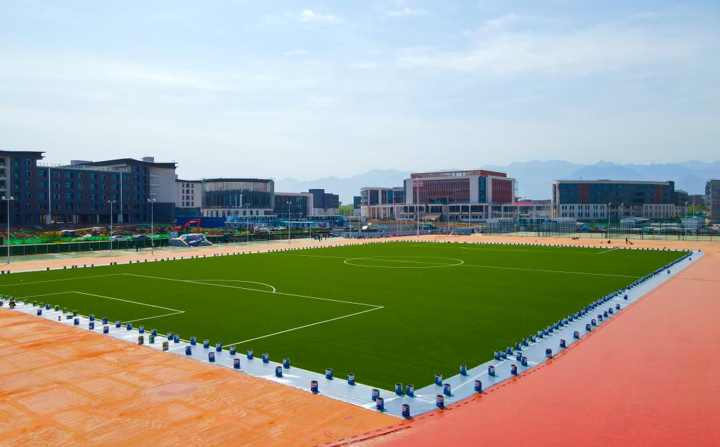 长安校区运动场专业面层施工从2021年11月开始,施工过程中严格遵循国际标准,设计、施工、监理和建设等参建主体单位严格控制施工质量,对草坪的平整度、粘接牢固性、橡胶颗粒摊铺均匀度和运动场整体坡度等关键要点精益求精,力求做到最好。2021年12月经监理单位和建设单位验收合格后,学院运动场正式完工并投入使用。