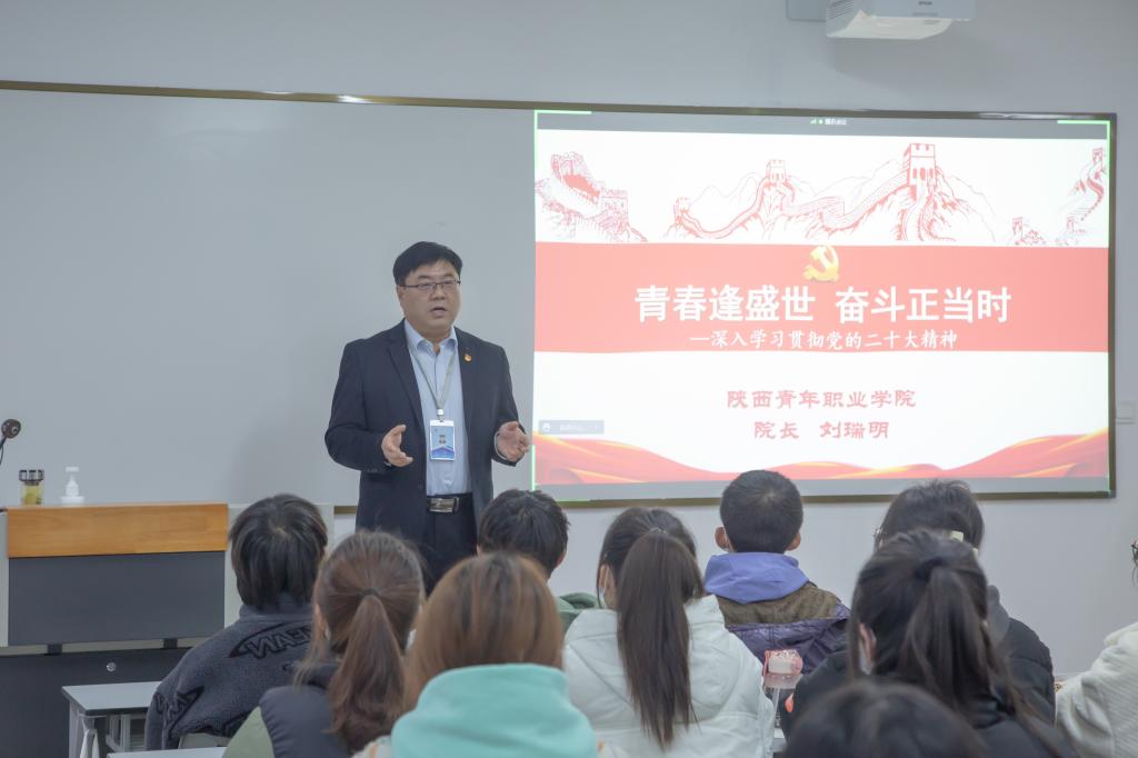 11月11日,院长刘瑞明在长安校区为小学教育系2022级小学教育专业3班学生宣讲党的二十大精神,马克思主义学院直属党支部书记、院长马雅玲,部分思政教师和全体学生聆听了宣讲。