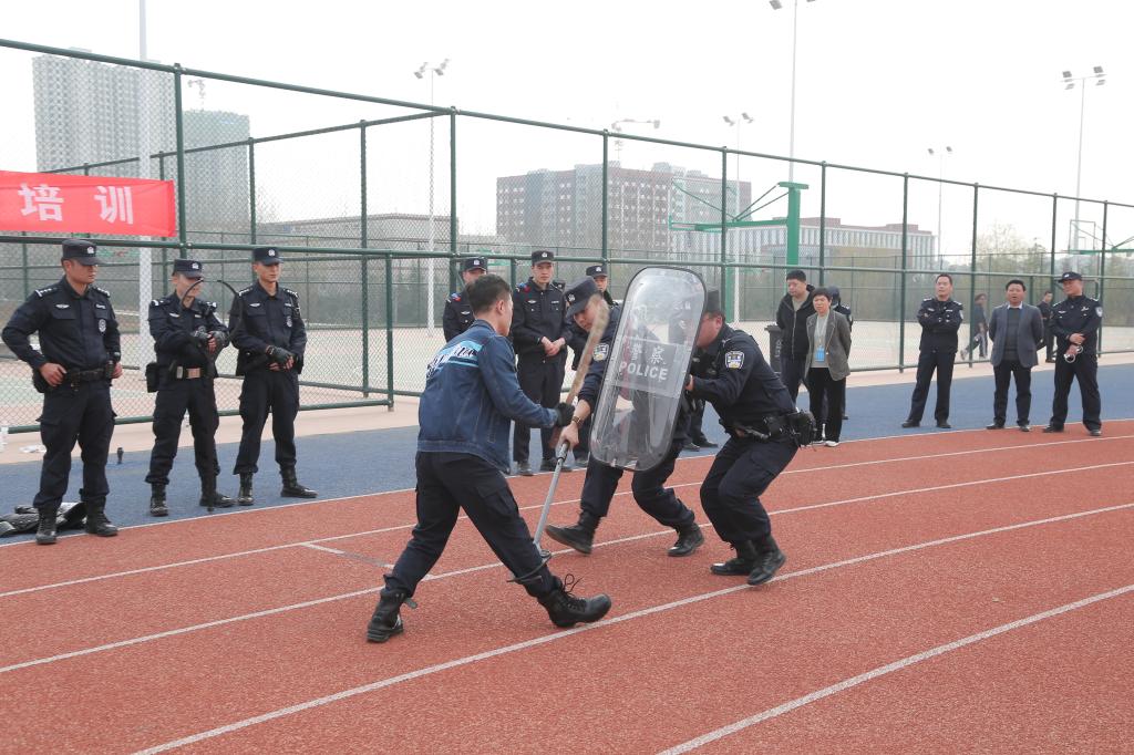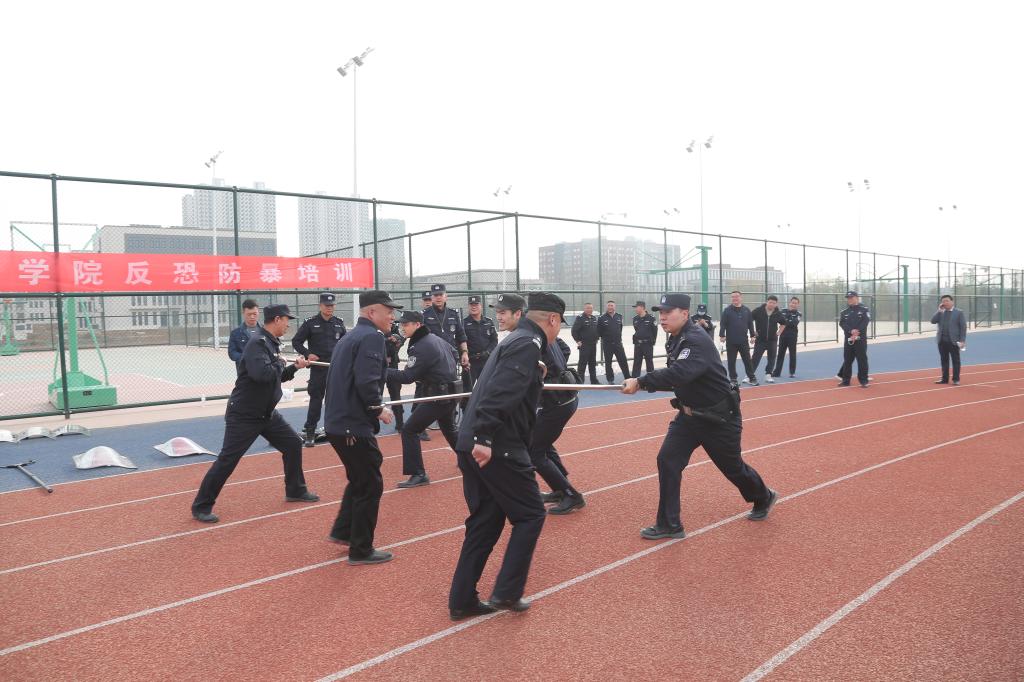 3月7日,保卫处在长安校区操场开展反恐防暴专业化培训及演练活动。副校(院)长宁建飞出席,学生处处长祁志、长安分局巡特警大队副大队长韩俊、杜曲派出所所长薛明、教导员刘利菊、保卫处全体工作人员及200余名学生参加了培训,保卫处处长姚书芳主持活动。