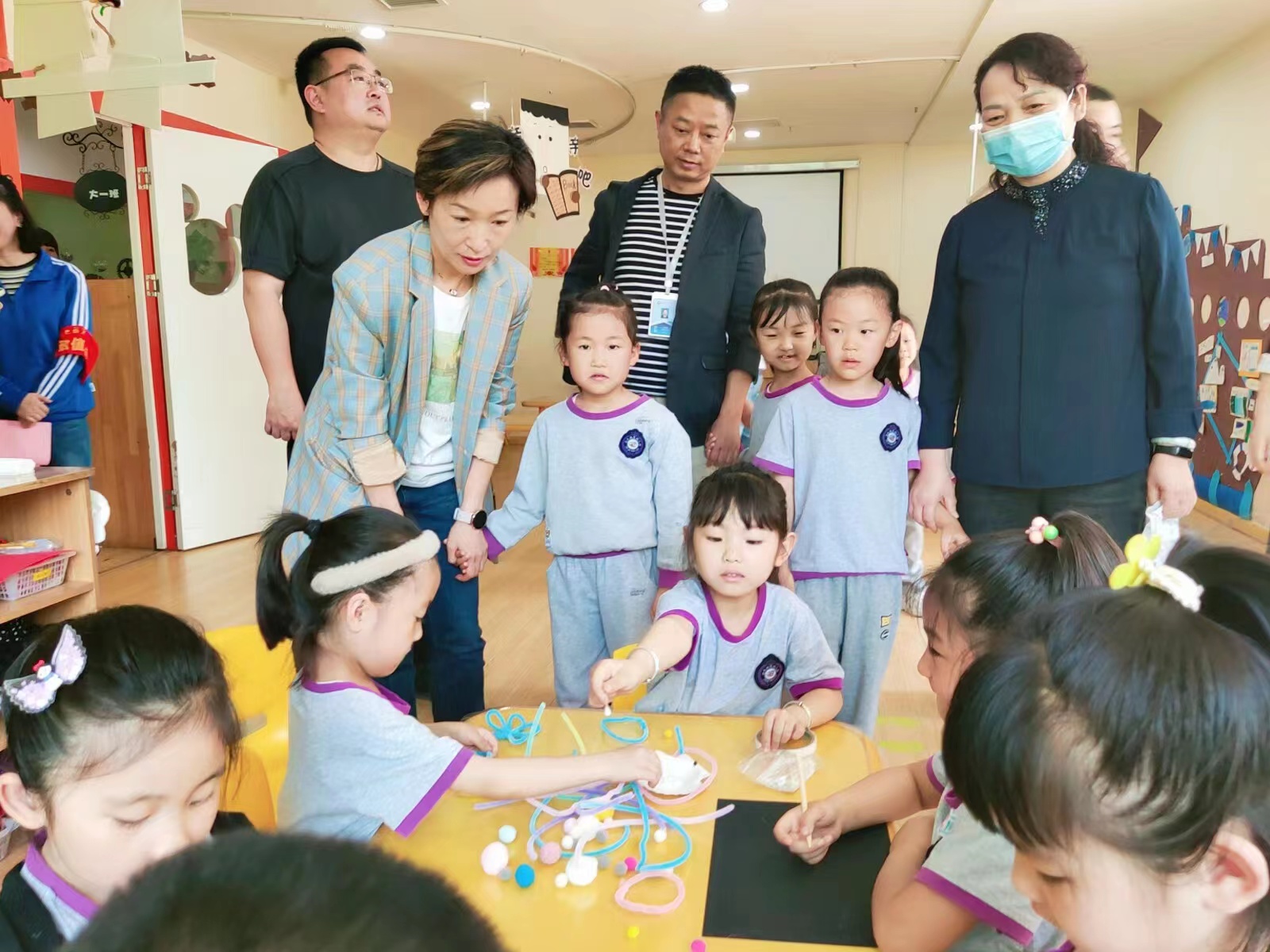 首先,在高金娥和幼儿园小小导游的带领下,梁菀华一行参观了解了幼儿园的园所环境、基础设施、区角活动及特色教学。小小导游们细致的介绍、热情大方的表现彰显了幼儿园开放、融合的教育理念,给所有人留下深刻的印象。
