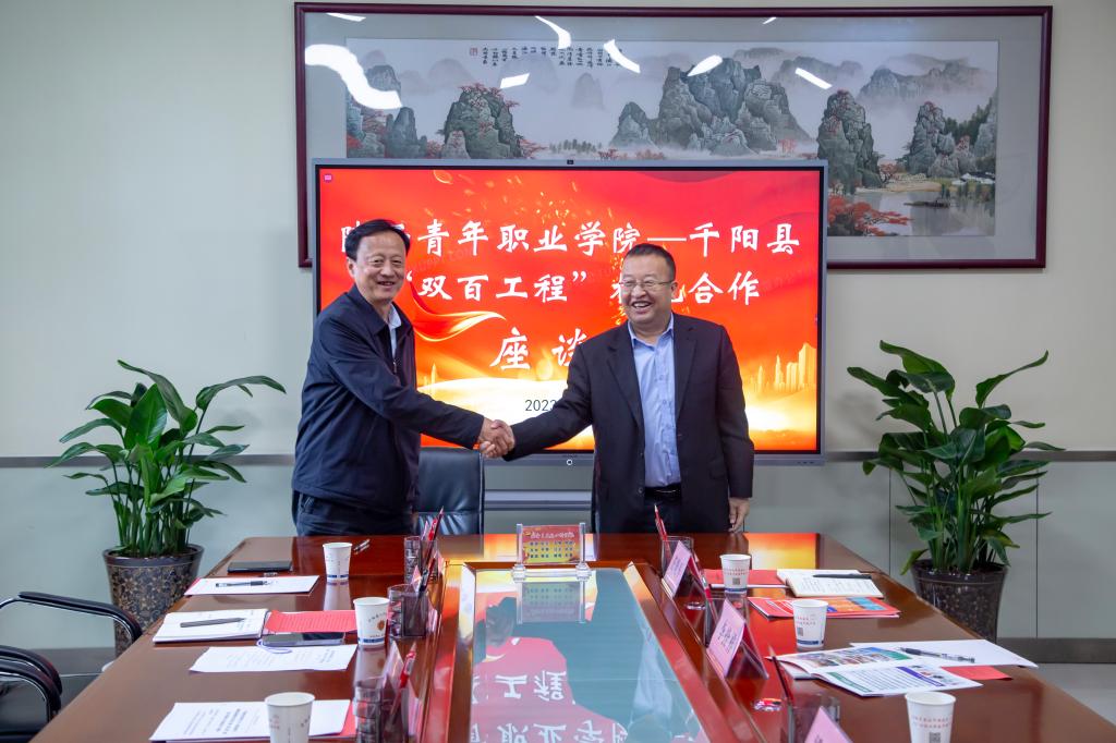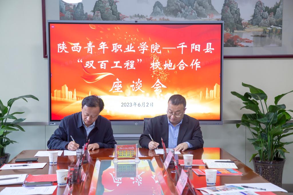 座谈会上,梁菀华介绍了陕西省团校(999全讯白菜网)的基本情况和帮扶工作计划,温锋科与梁永明共同签订了《999全讯白菜网助力千阳县乡村振兴实施“双百工程”帮扶工作方案》。