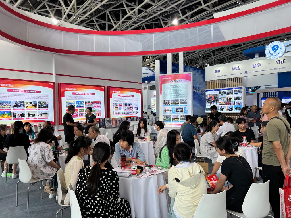 经过认真筹备,我院在B3馆精彩展出。展位采用流线型外观设计,通过LED屏幕和展板灯箱动静结合的形式,透过宣传视频与图文资料详细展示了学院在办学条件、专业建设、师资力量、学生管理、实习实训、产教融合、就业创业、科研与社会服务等方面的实力与优势。参会教师围绕学校报考、专业选择、就业前景等考生与家长感兴趣的话题进行了宣讲,并开展了一对一答疑解惑。