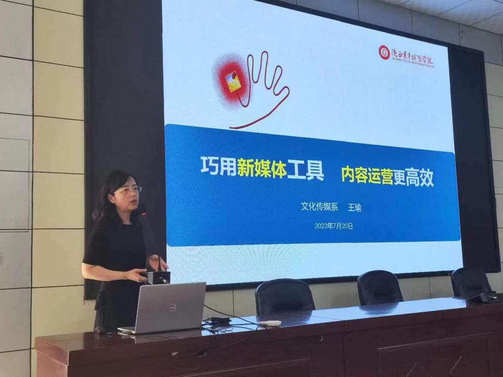 我院对接千阳县教育体育局、千阳县农业农村局组织的关于开展果农网红和营销达人培训需求,王瑜以“巧用新媒体工具,内容运营更高效”为题,通俗易懂地讲解什么是新媒体,怎样使用各类新媒体工具让手机变成“新农具”,实现内容的社会与经济效益,助力乡村经济发展;唐毅以“短视频内容策划引流技巧”为题,通过生动的视频案例和风趣幽默的讲解互动,与学员分享如何制作具有审美需求、生存需求、具有“好奇心、同理心、爱心”的爆款视频。两位老师的讲座受到培训学员一致的欢迎与好评。