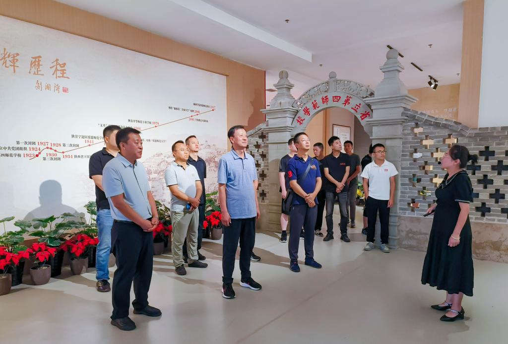 为深入开展学习贯彻习近平新时代中国特色社会主义思想主题教育,重温习近平总书记来陕考察重要讲话重要指示,感悟习近平新时代中国特色社会主义思想的真理力量和实践伟力。8月15日,党委书记温锋科带领历届驻村工作队队长队员(按住村先后)薛江泉、徐学海、刘延隆、张波、王怀及驻村工作队队长丁浩、队员肖晓光、梁宏耀和乡村振兴挂职岔上镇副镇长郭宇,赴榆林学院绥德校区(绥德师范)和中共绥德地委旧址,开展“传承红色基因,赓续红色血脉,沿着总书记足迹看变化悟思想”实践研学活动。榆林学院绥德师范校区党工委书记、管委会主任张雄、榆林学院绥德师范校区管委会副主任封蕾陪同,党委(院长)办公室副主任高路、组织部(人事处)梁睿参加。