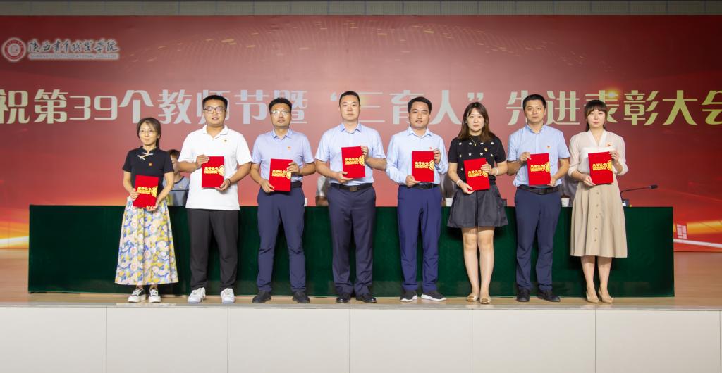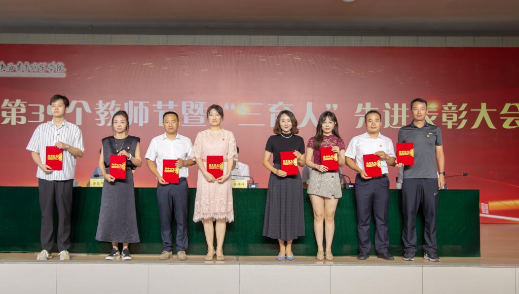 9月8日下午,校(院)举行庆祝第39个教师节暨2021-2023年度“三育人”先进表彰大会。党委书记温锋科、党委副书记梁菀华、副校(院)长韩凯军出席,受表彰集体、个人,副高及以上职称专业技术人员,各系(院)、各部门主要负责人,教职工代表,相关系和部门新入职教职工参加。党委书记温锋科讲话,党委副书记、校(院)长刘瑞明主持。