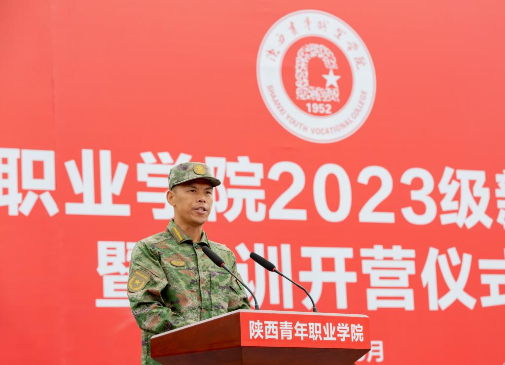 副院长韩凯军在总结大会时号召同学们希望2023级全体新同学秉承学院朝气蓬勃、至诚至坚的校训,以饱满的热情积极主动投身军训,为三年大学生活开好头,不负青春,不负韶华。