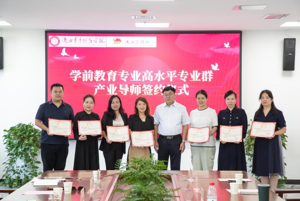 9月14日下午,学前教育专业群产业导师签约仪式在长安校区举行。院长刘瑞明出席会议并讲话,副院长韩凯军出席,教务处处长张小卫、小学教育系党总支书记、主任杨西京,学前教育系党总支书记、副主任刘延隆,组织部(人事处)副部长(副处长)吕子静、小学教育系教学工作负责人李晓桦、学前教育专业教研室副主任李杨及7名受聘产业导师参加,学前教育系副主任朱凯利主持会议。