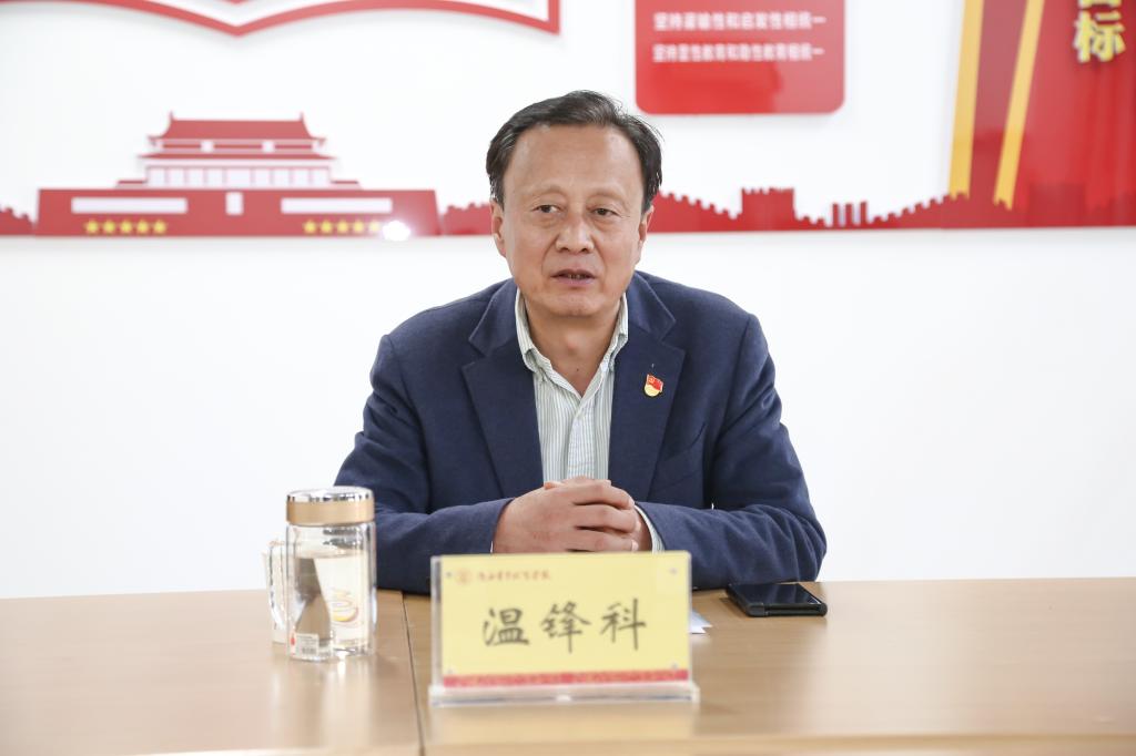 首先,温锋科深入教学一线,走进思政课堂,与师生同听思政课教师冯静雯讲授的《思想道德与法治》课中“理想和信念教育”一节。课程从学生自己“谈理想”导入,引出理想的内涵和特征,通过案例教学、小组讨论等,展开了教学内容的学习。冯静雯的授课亲和力强、内容流畅、互动有序,效果良好。温锋科书记边听边记,认真观察授课教师的教学情况及学生的学习状态。