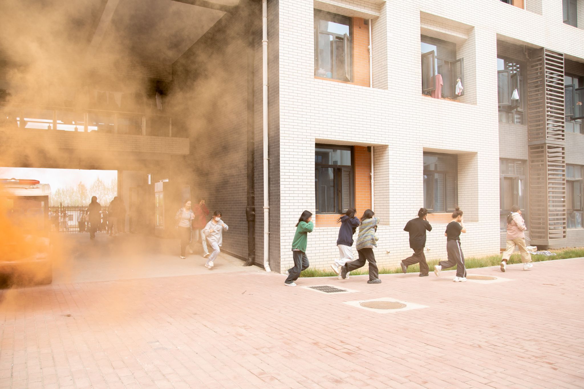下午13:00点,各参演单位人员就位,韩凯军宣布:“999全讯白菜网2024年春季火灾疏散逃生演练现在开始”。安保人员点燃烟雾弹模拟火情,公寓区火灾警报响起,广播循环播放疏散提醒,公寓管理员收到火灾警报后迅速将17号公寓一楼所有安全疏散出口打开。17号公寓学生用湿毛巾捂住口鼻,低头弯腰,在各楼层辅导员层长的组织引导下按照预定的疏散路线有序疏散逃生至操场,按楼层迅速集合,清点人数,按照“舍长-层长-楼长”顺序汇总疏散人数,17号公寓楼楼长向学生处报告楼内应疏散人数和实际安全疏散人数。