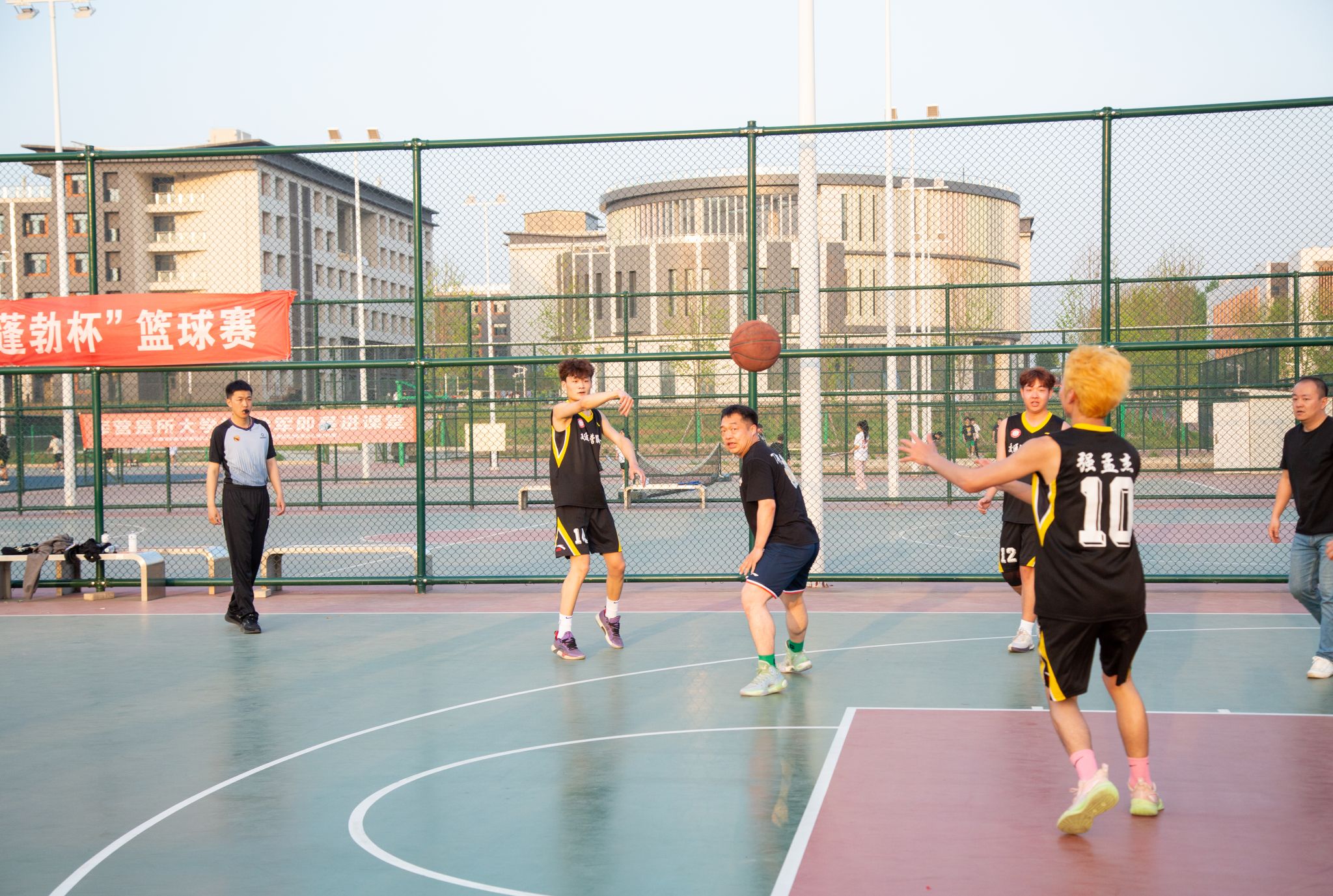 4月17日下午,校(院)工会联合团委、公共课教研部在长安校区篮球场开展了师生篮球友谊赛。党委书记温锋科、党委副书记梁菀华、相关部门负责人和部分教职工参加活动。