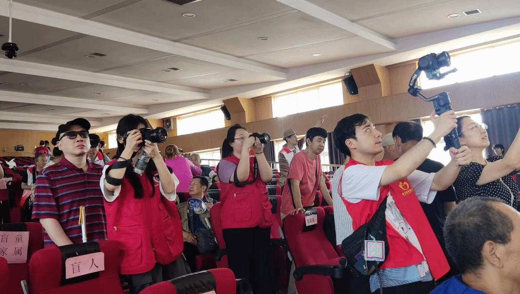 活动过程中,我院志愿者身穿红色马甲,穿梭在会场上,负责摄影摄像、引导盲童上台表演、观众落座、紧急需求等志愿服务。同时,志愿者们也为音乐会献上了三个精彩的节目,观众们的掌声络绎不绝。