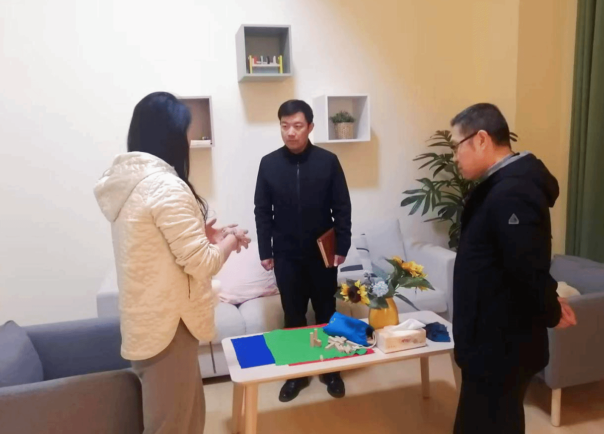 张建宽走访了“家校社医”系统家庭治疗室、个体心理咨询室、表达性艺术功能室、特色心理工作室(艺术疗愈体验室)和心理健康团体辅导室,调研了解了家、校、社、医协同育人实施情况,学生个体咨询预约流程、数量、效果等情况;现场体验了心理沙盘、音乐疗愈器械,并详细询问了相关设施设备的使用情况。