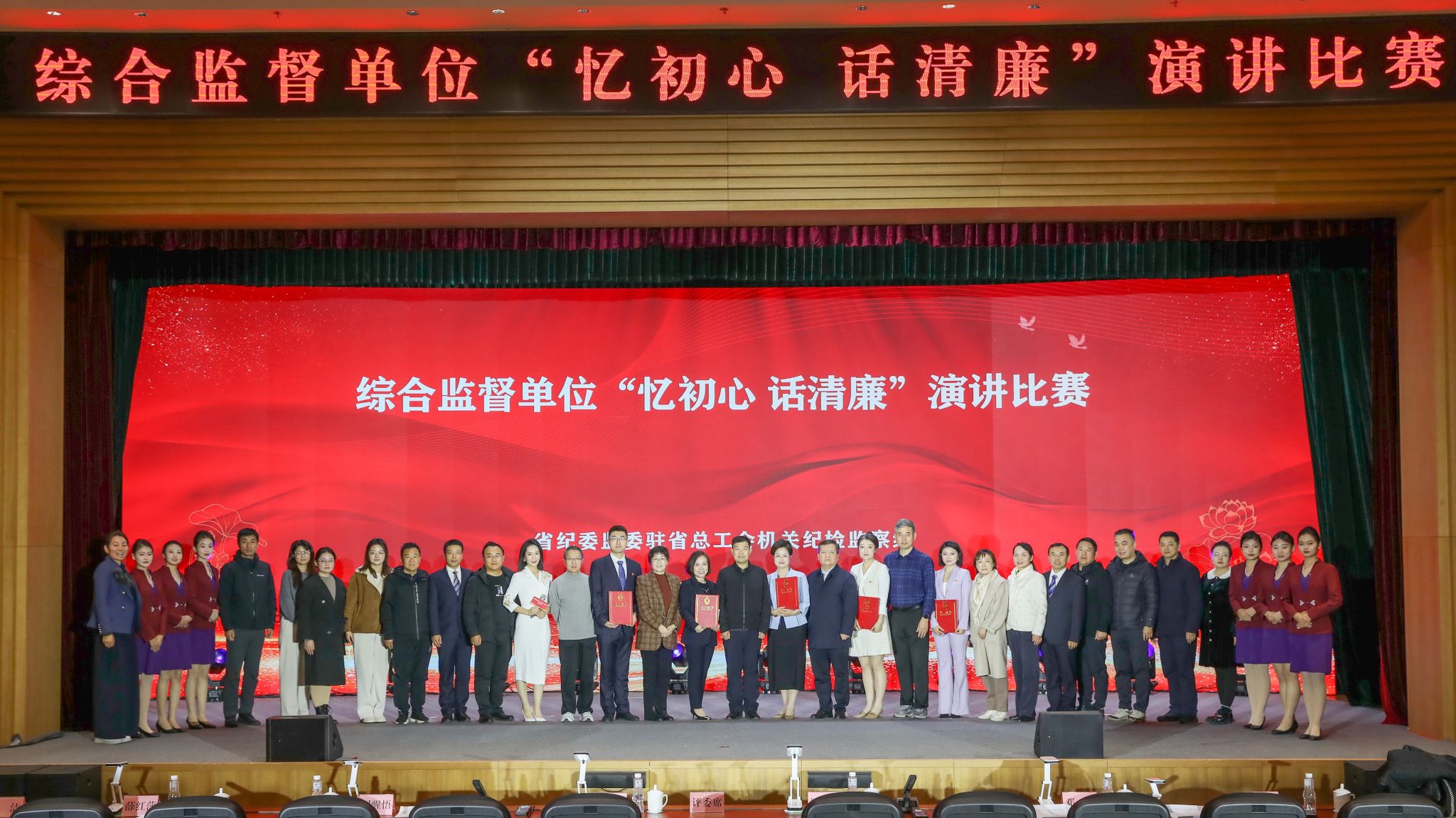 12月5日、6日,由省纪委监委驻省总工会机关纪检监察组主办的综合监督单位“忆初心 话清廉”演讲比赛活动在陕西工人疗养院举办。党委书记张建宽,校长马东红,党委副书记、纪委书记薛红萍,副校长韩凯军出席决赛,纪委委员、部分教师代表到场观赛。