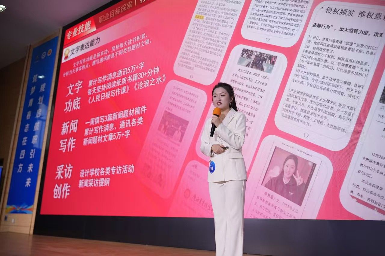 经现场陈述、评委提问等多个环节激烈角逐,由肖煜博、倪薇指导的小学教育系2023级小学教育专业李蕤荣获职教组成长赛道金奖,曹曼菲指导的文化传媒系2023级新闻采编与制作专业李艺涵荣获职教组成长赛道铜奖。肖煜博、倪薇荣获优秀指导教师。