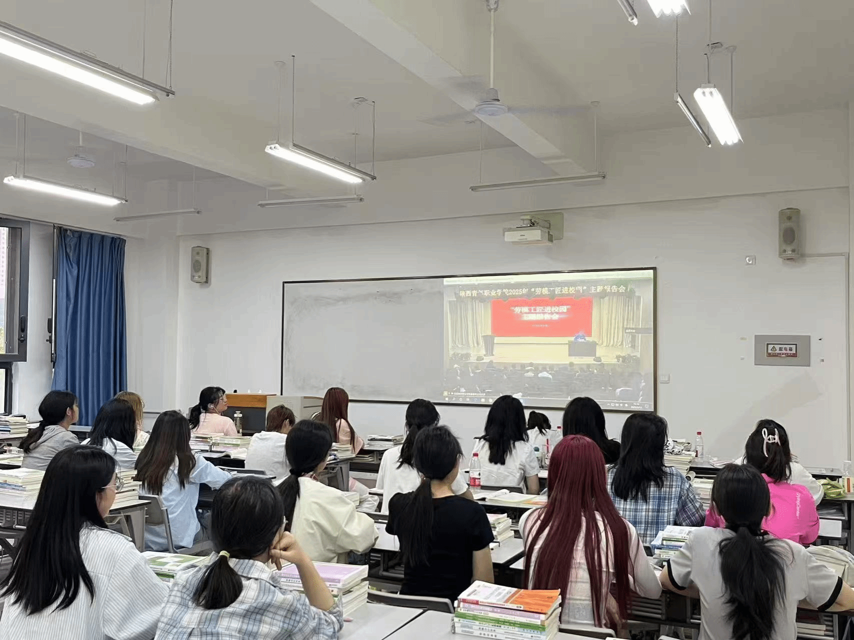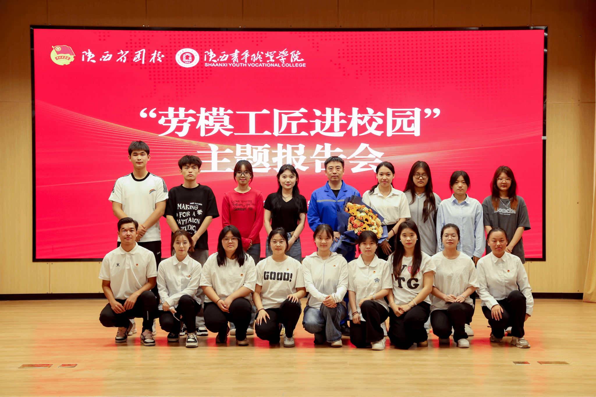 活动邀请“全国五一劳动奖章”“全国向上向善好青年”“全国青年岗位能手标兵”“全国最美退役军人”“陕西省劳动模范”获得者、中铁一局西康高铁长安梁场作业队队长郝铎走进校园作专题报告。报告会以线上线下相结合的方式进行,面向全体在校学生同步直播。学校领导班子成员,宣传部、学工部、马克思主义学院、团委主要负责人,各系学生工作负责人和各系团委书记、全体思政课教师和学生代表在报告厅现场参加。报告会由副校长韩凯军主持。