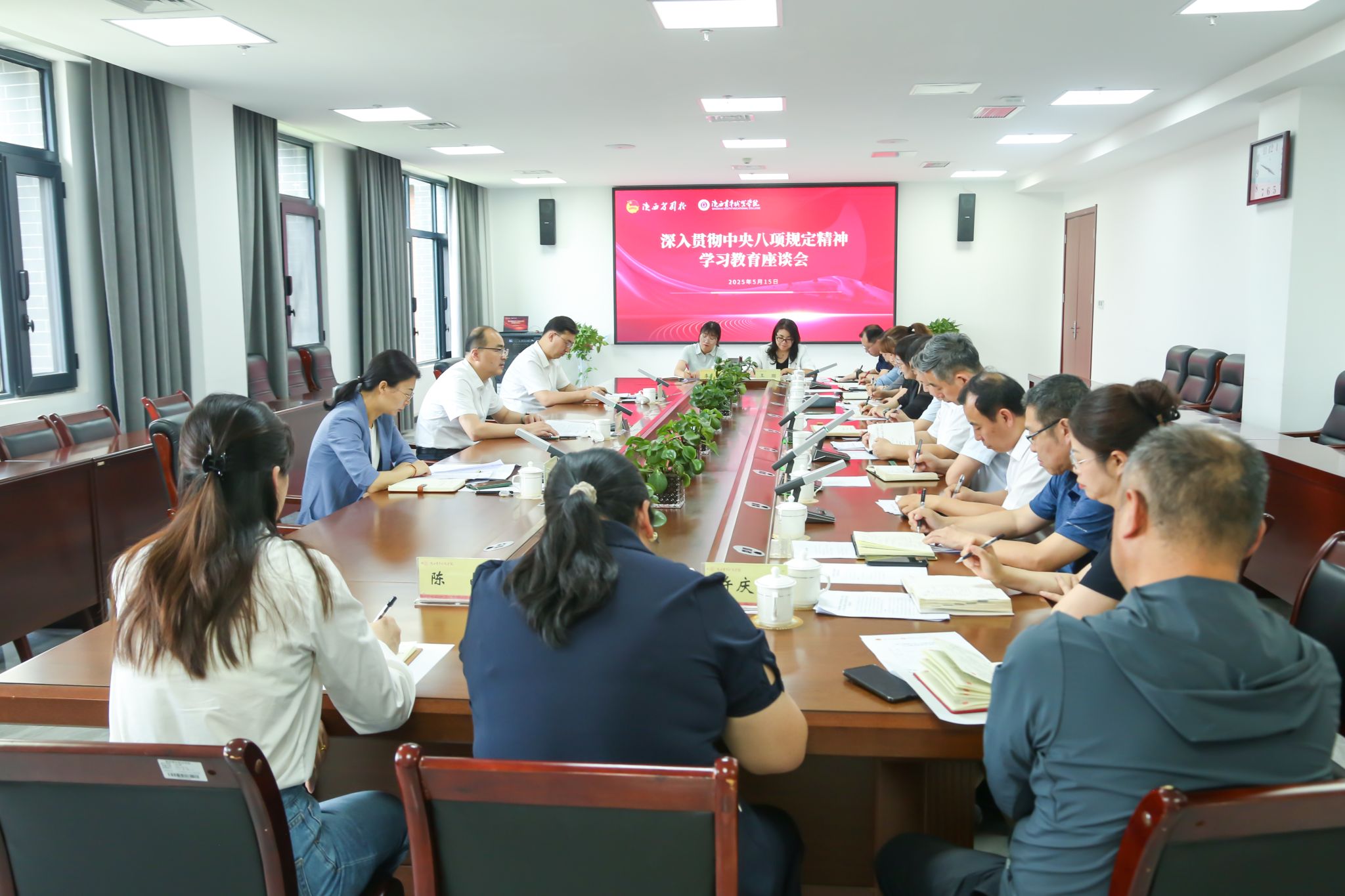 座谈会上,党委书记张建宽汇报学校开展深入贯彻中央八项规定精神学习教育、落实全面从严治党主体责任等工作情况。副校长韩凯军,文化传媒系党总支书记、副主任王瑜,培训部党支部书记、副主任宋利国进行交流发言。