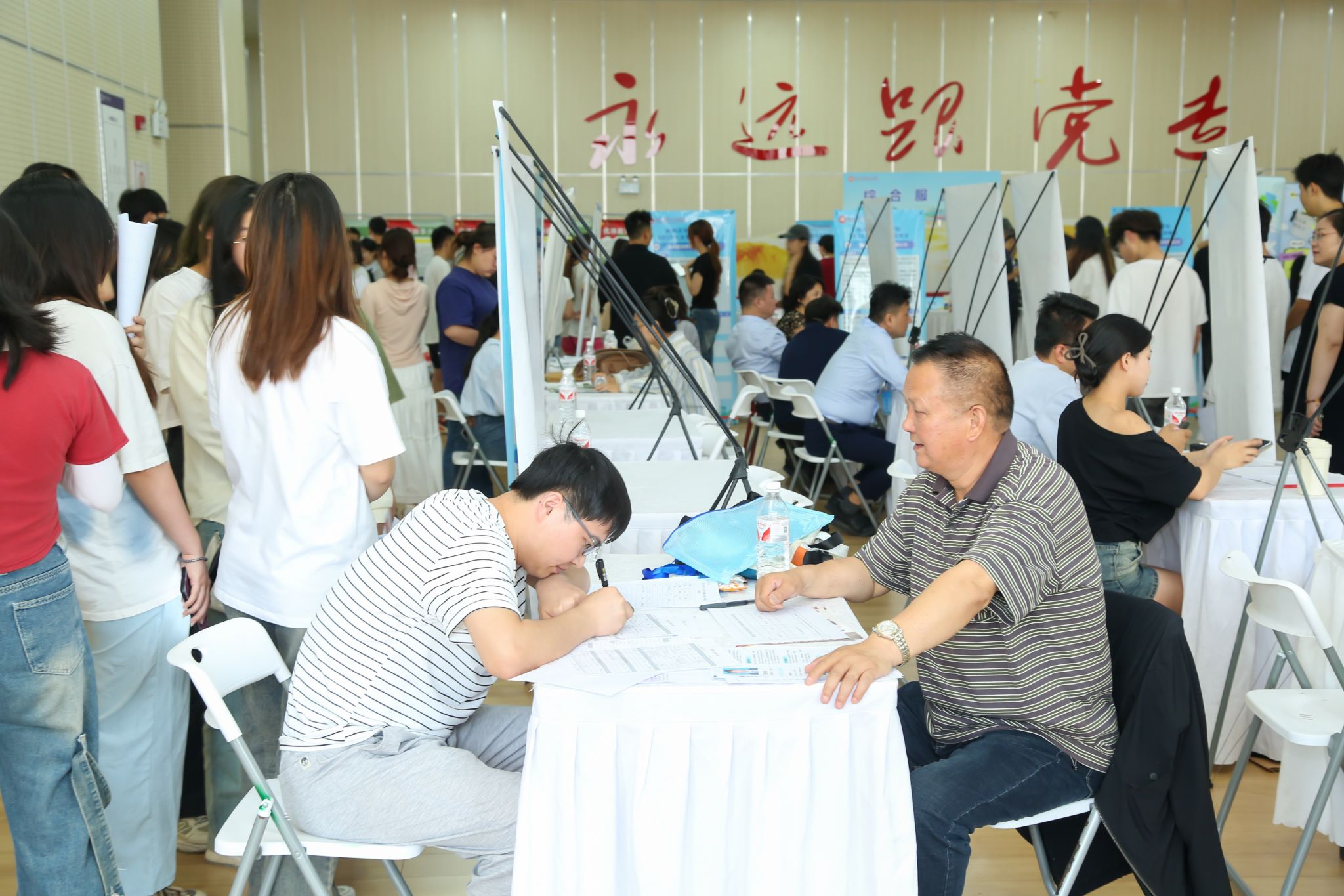 学校党委高度重视毕业生就业创业工作,学校领导班子、各系负责人围绕人才培养、专业建设、实习就业与用人单位深入研讨交流。辅导员们现场认真指导服务,2025届、2026届毕业生精心准备、勇敢自荐。招聘会现场气氛热烈。