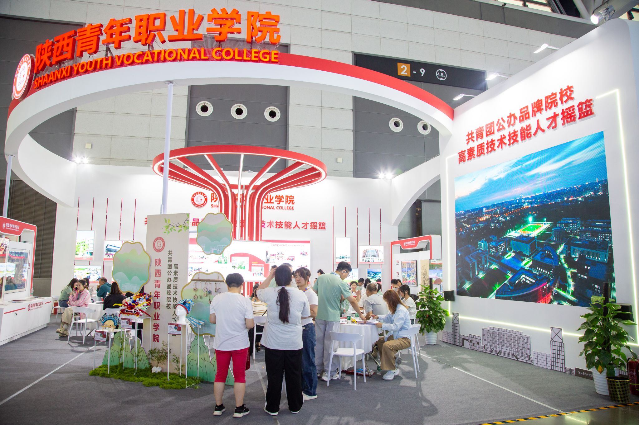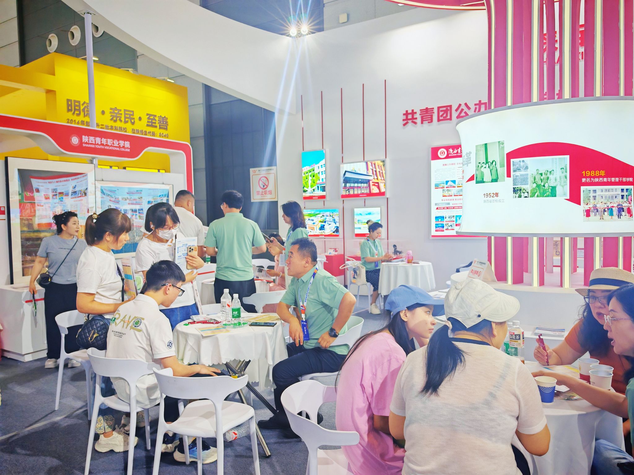 我校认真筹备、积极参展,在西安国际会展中心2馆精彩展出。此次参展采用了更大的场地面积和更加简约流畅的造型设计,空间通透、特色鲜明。通过LED屏幕播放宣传视频和图文展板灯箱动静结合的形式,详细展示了学校历史沿革、专业特色、教学科研、产教融合、就业创业、“大思政课”建设等方面优势与成果。