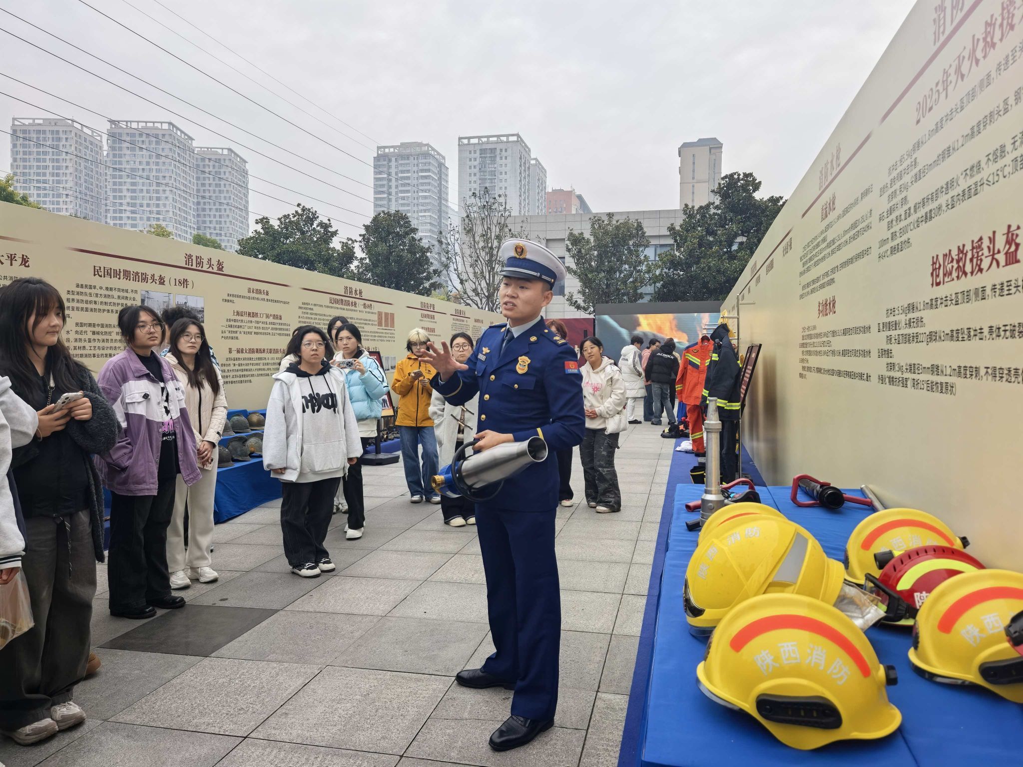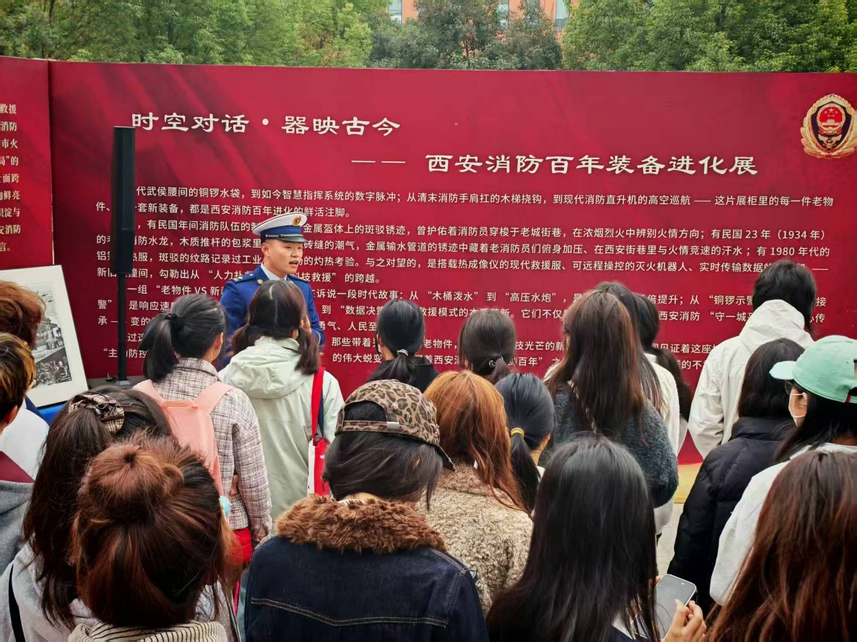 活动中,西安市消防救援支队讲解员向我校师生介绍了消防的起源与形成,讲述了近代以来西安市消防救援事业的发展历程,特别是现场展示了消防器材的历史演变,让参观师生近距离感受了现代消防器材的专业性和多样性。
