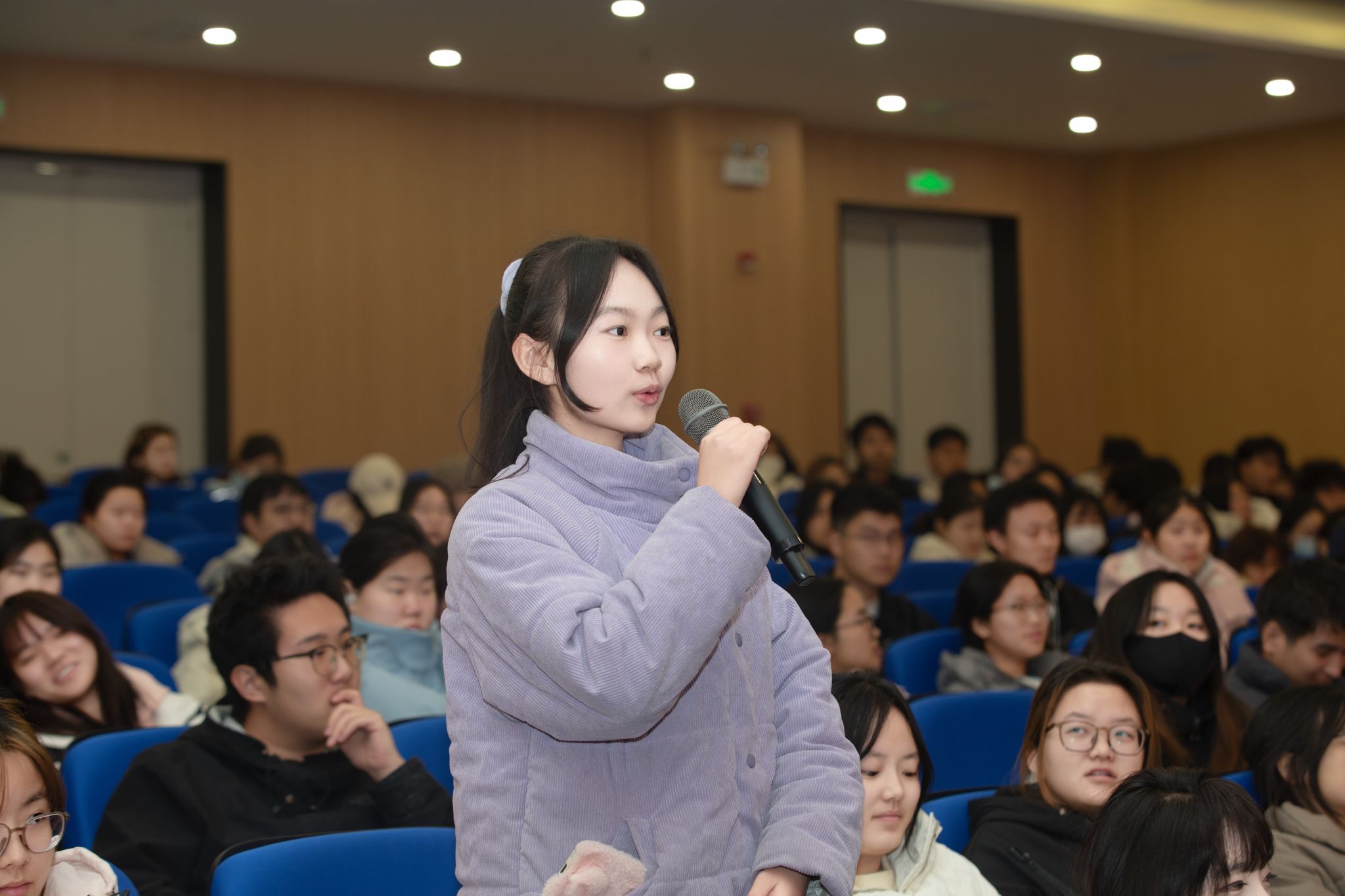 聆听了党丽娜的报告,同学们备受鼓舞,纷纷表示,党丽娜老师以岗为田,以心为帆,把平凡工作做到极致的坚持生动诠释了劳模工匠精神,她对职业的热爱和对时代的承诺体现了基层劳动者最朴素的荣光,是一堂有温度的思政课。互动交流环节,同学们围绕工作创新、自我提升、团队引领等方面争相提问,党丽娜耐心细致地予以回答,现场气氛轻松欢快。