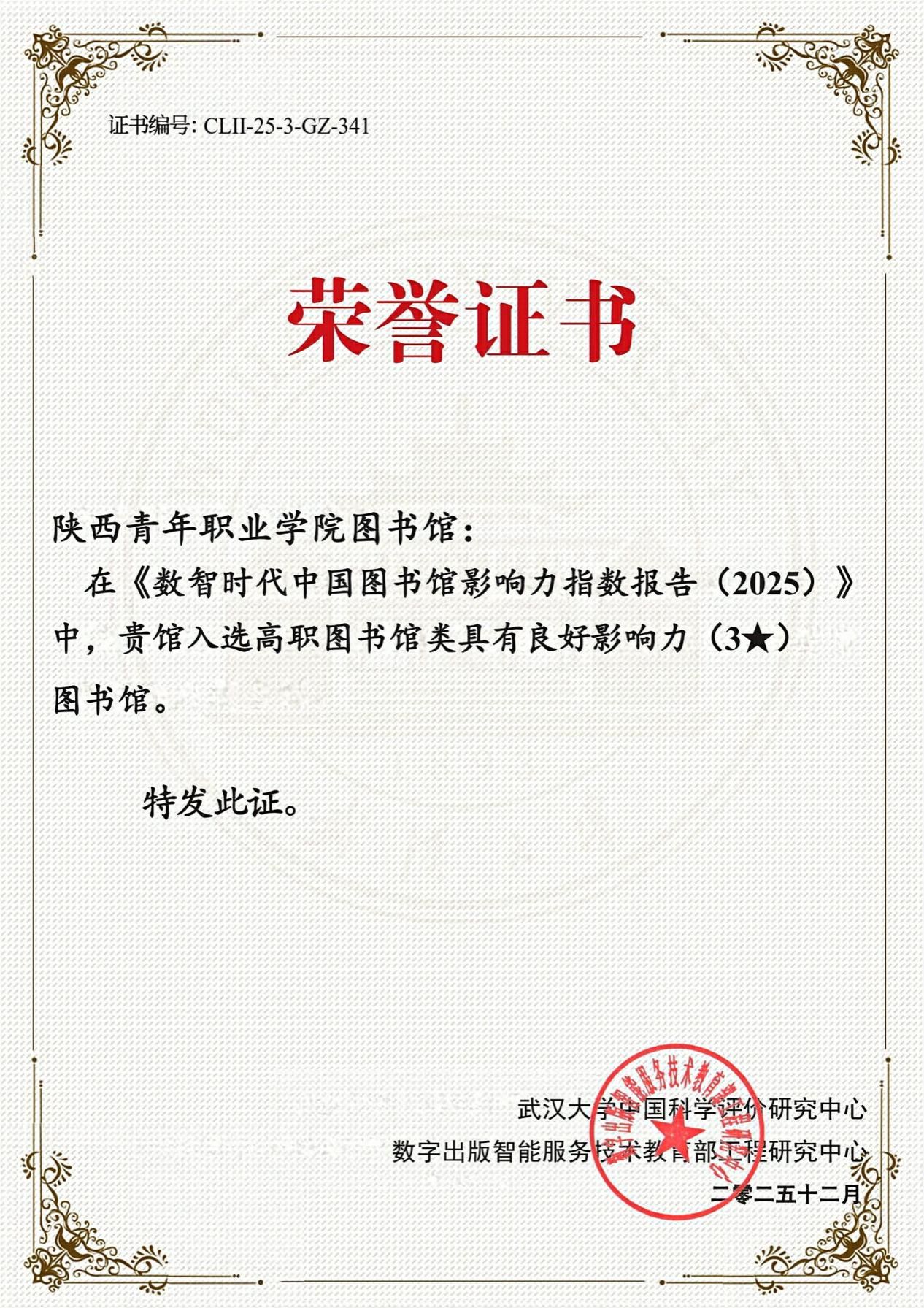 我校图书馆获评《数智时代中国图书馆影响力指数报告(2025)》“良好影响力图书馆”