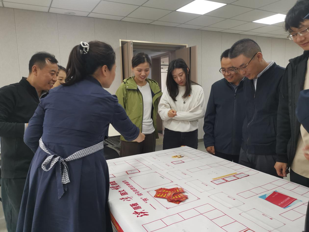 随后,全体党员在教学楼开展了“读原著、学原文、悟原理——‘拼’读马克思主义经典”桌游活动。在教师晁艳主持,双方支部的10名党员通过抽取问题卡,拼接马克思主义经典著作,重温了马克思主义经典语录,提升了马克思主义理论素养,并通过领学学习贯彻习近平新时代中国特色社会主义思想主题教育学习内容,进一步增强了全体党员的政治理论水平。
