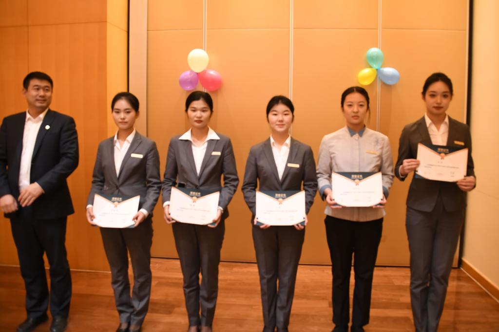 陕西宾馆人力资源部总监程璐介绍了上半年各部门实习生工作整体情况和各院校实习生留用率,为优秀实习生颁发了荣誉证书。交通运营服务系2021级高速铁路客运服务专业学生吴茜作为优秀实习生代表进行了交流发言,分享了自己在企业实习过程中的工作内容和收获感想,感谢学院指导教师和企业带教师傅的悉心培养与耐心指导;陕西宾馆党委副书记、总经理李辉对我院在协助接待“中国—中亚峰会”过程中给予的大力支持与配合表示衷心的感谢,并颁发了纪念奖牌,对同学们在服务过程中顾大局、识大体、肯担当、能吃苦的优良品质给予了肯定与赞扬。
