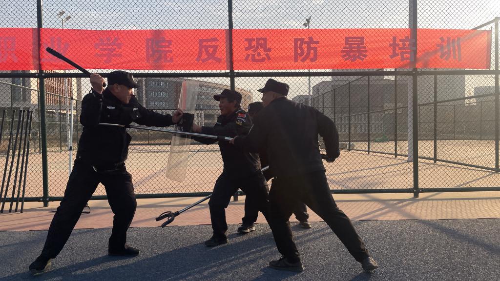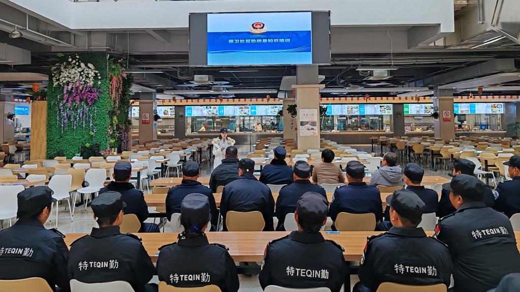 12月1日,保卫处在长安校区开展反恐防暴知识培训和演练活动。杜曲派出所驻校民警张建利、保卫处管理人员、除值班人员以外的全体校卫队员参加,保卫处工作人员吴丹主持。