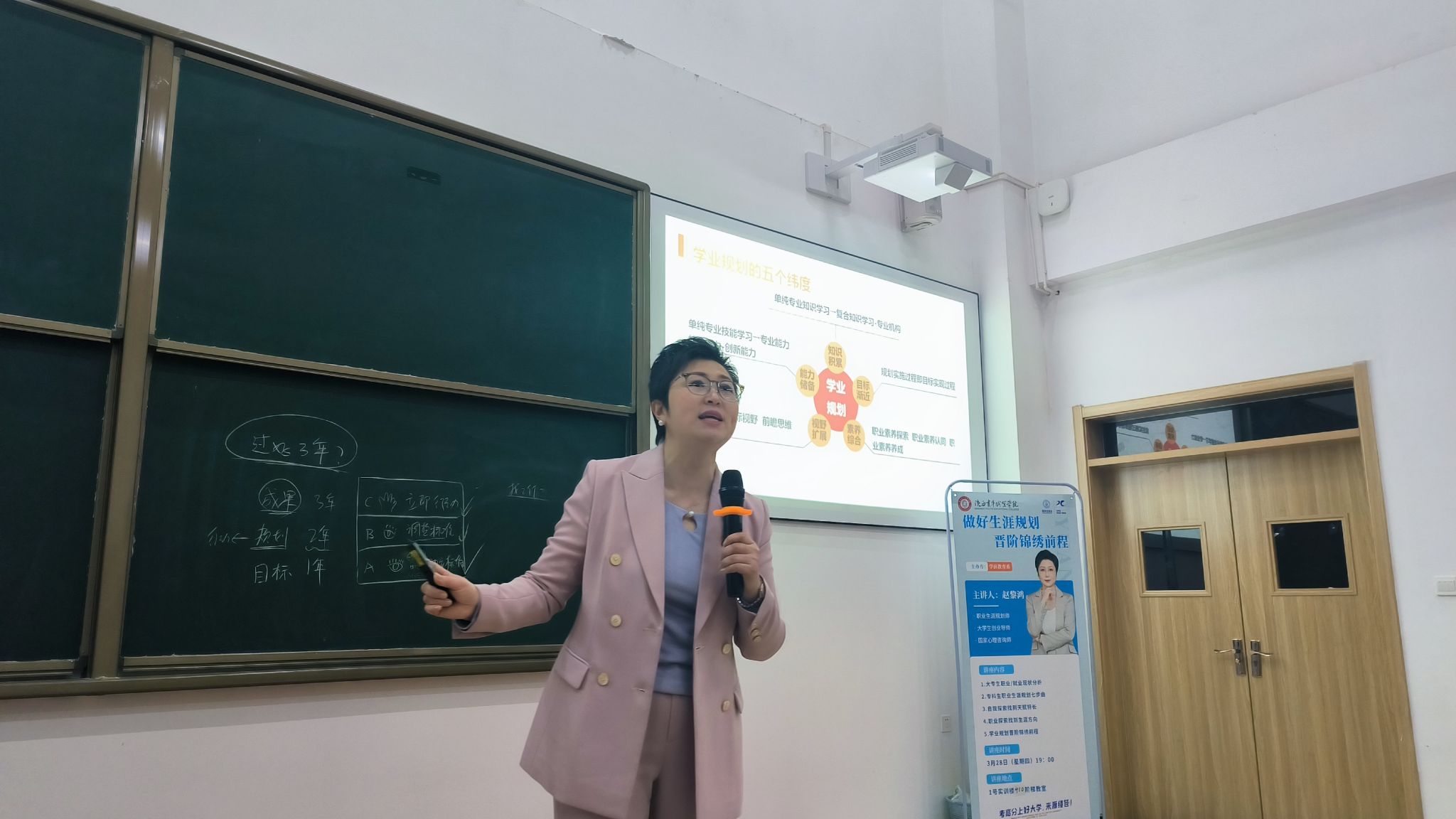 赵黎鸿结合自己求学、从教及从业的经验,从专科生职业/就业现状分析、职业生涯规划七步曲、自我探索找到天赋特长、职业探索找到生涯方向、学业规划晋阶锦绣前程等五个方面进行详细分享;同时通过一系列案例、数据和互动性的交流,利用MBTI人格测试、霍兰德职业心理测试等测评工具,加深了同学们对职业生涯规划的认识和了解,引导同学们要本着“择己所爱、择己所长、择己所利、择世所需”的原则,尽早制定科学合理的学业规划和职业生涯规划,并付诸行动,不断增强核心竞争力,为将来实现高质量就业奠定良好基础。