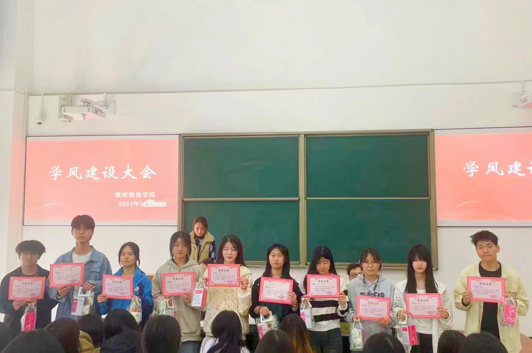 3月29日,继续教育学院召开2024年学风建设暨先进集体先进个人表彰大会,对2022-2023学年各方面综合表现优异、成绩突出的集体和个人进行表彰。继续教育学院直属党支部全体党员,继续教育学院2022级、2023全体学生参加。会议由支部宣传委员、2022级专职班主任车安安主持。