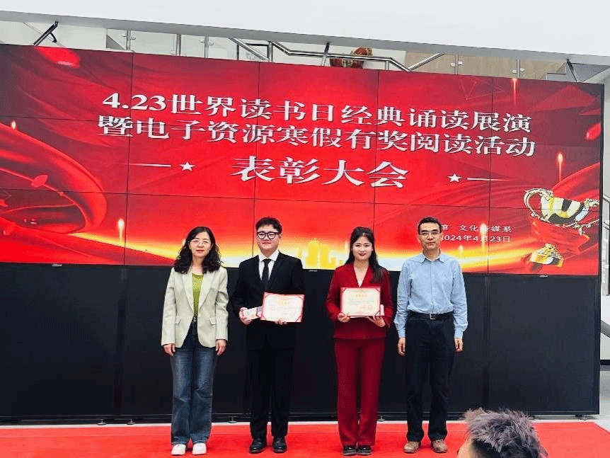 4月23日,“诵经典 品书香 塑人格”4.23世界读书日经典诵读展演暨电子资源寒假有奖阅读颁奖活动在长安校区图书馆新馆举办。文化传媒系党总支书记、副主任王瑜,图书馆副馆长刘延民,文化传媒系教师、辅导员及图书馆相关老师参加。文化传媒系学生古怡欣主持。