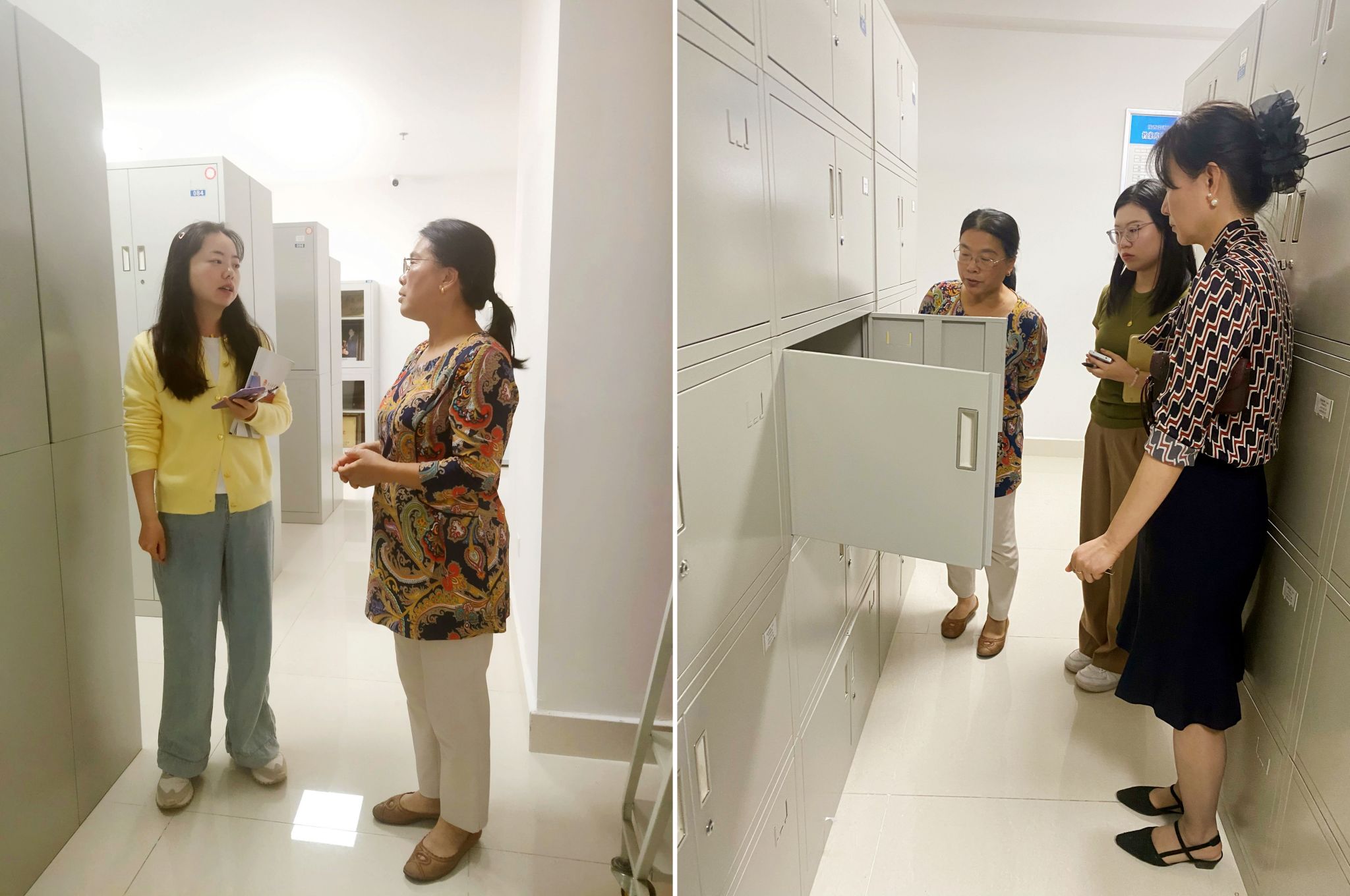 王爽、朱卫华分别带领我院学习人员参观了陕交职院档案库房,陕交职院对口部门兼职档案员分别介绍教学、财会、科研、基建类档案的整理、收集、组卷、移交归档等档案管理的具体步骤和注意事项。