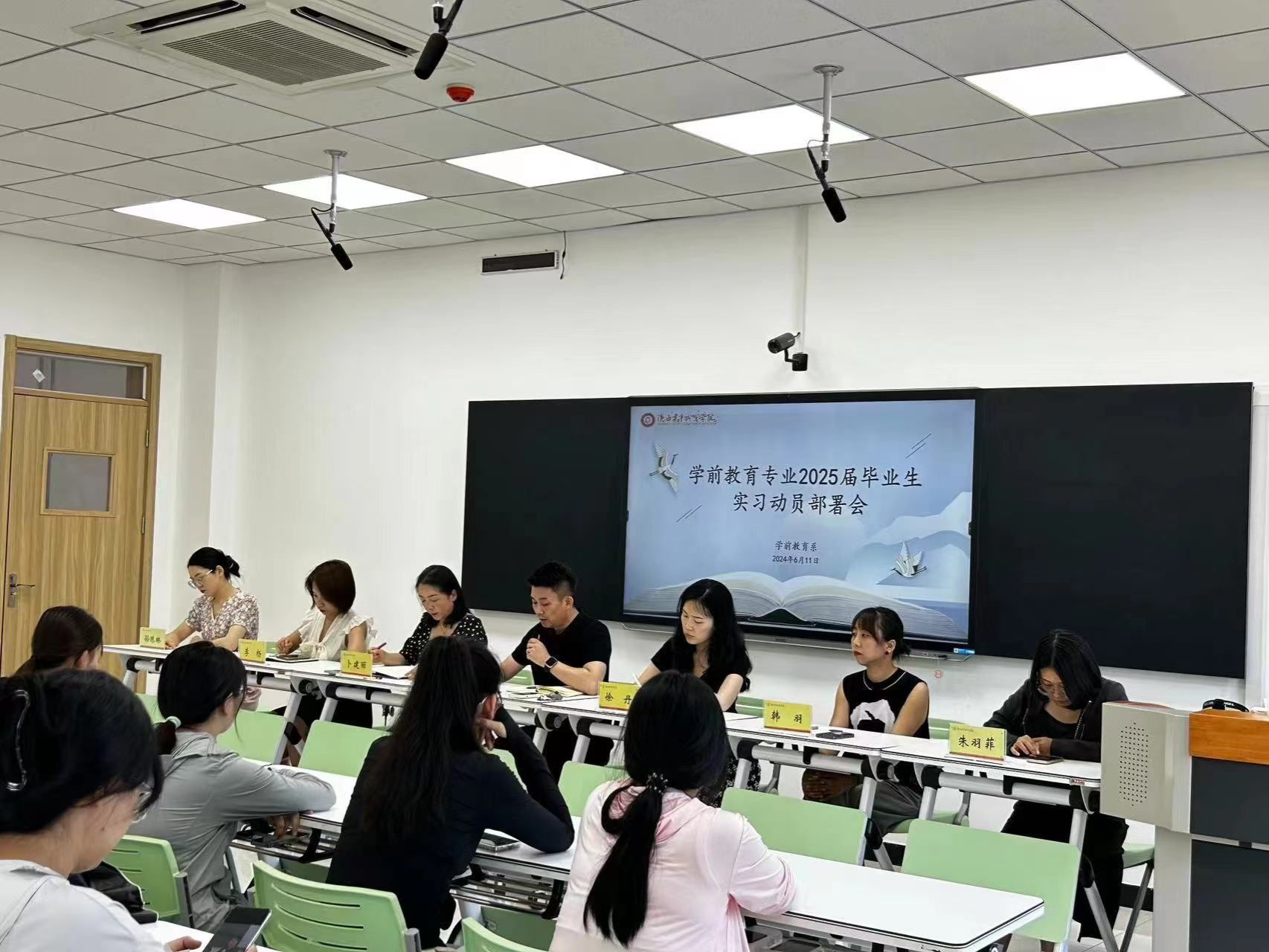 6月11日,学前教育系以主分会场相结合的方式召开了2025届毕业生实习动员部署会,对毕业生岗位实习工作进行了全面安排。学前教育系副主任朱凯利,学前教育专业教研室主任徐丹、副主任李杨,辅导员韩羽、孙珠琳、朱羽菲及2025届全体毕业生参加。会议由学生工作负责人卜建丽主持。