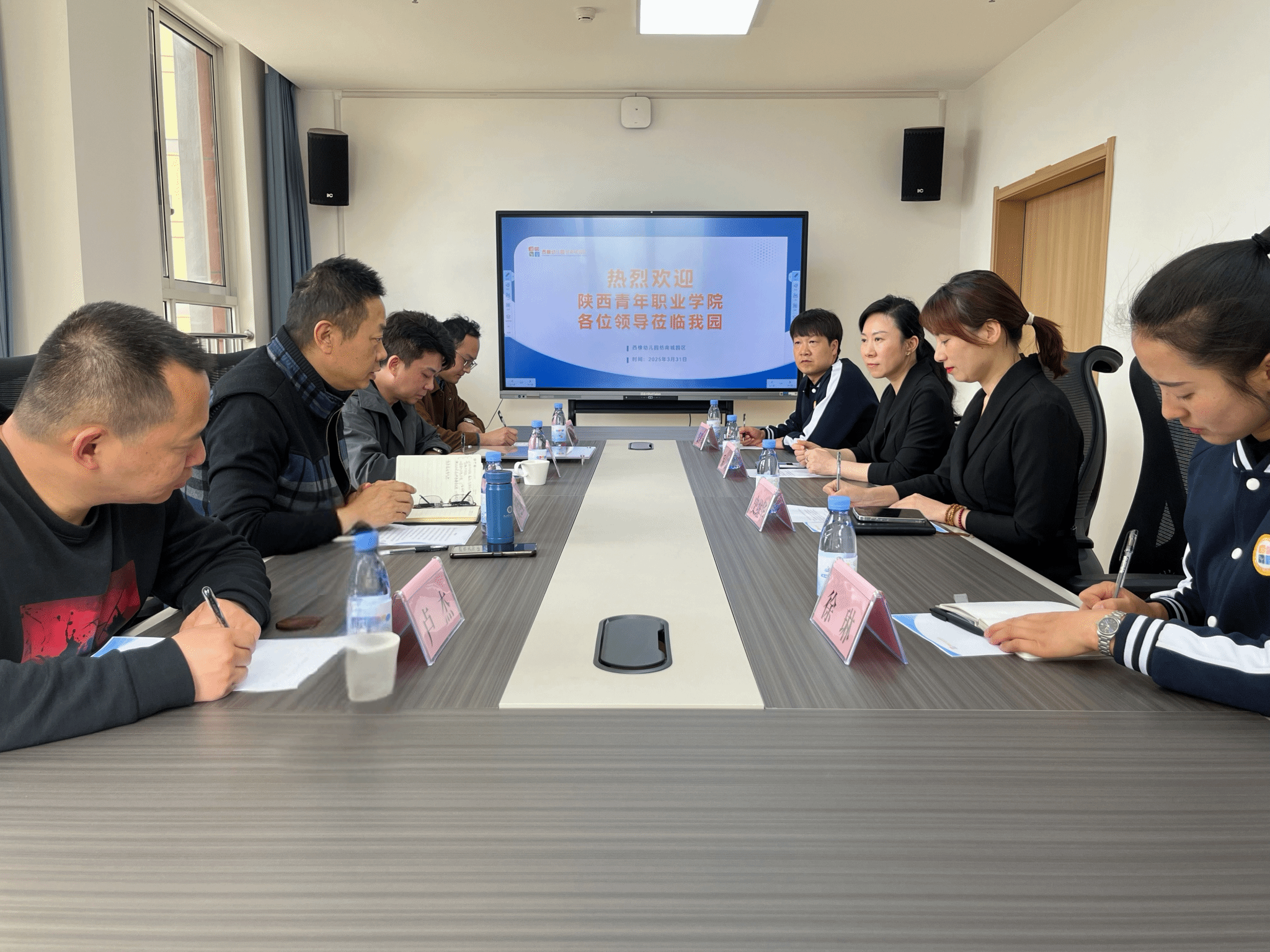 3月31日下午,学前教育系党总支书记、副主任刘延隆一行四人赴西橡幼儿园纺南城园区举行结对帮扶签约仪式。学前教育系副主任朱凯利、教师卢杰、辅导员陈嘉豪参加活动,幼儿园园长岳琦、保教干事史维华以及部分骨干教师全程陪同接待,史维华主持仪式。