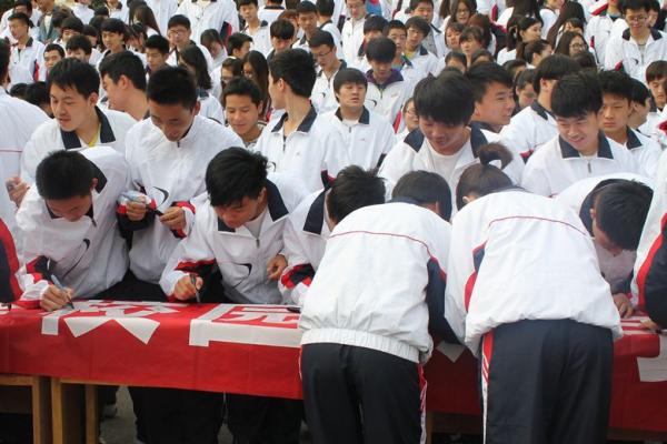 伴随着嘹亮的国歌声,五星红旗冉冉升起。2012级广告设计与制作专业薛江伟同学代表全体师生在国旗下发言,该系团工委副书记王菲老师带领全体团员青年重温入团誓词,2012级主持与播音班团支部朱继余同学宣读“做文明大学生 建和谐校园 从我做起”的倡议书,并发起签字仪式。
