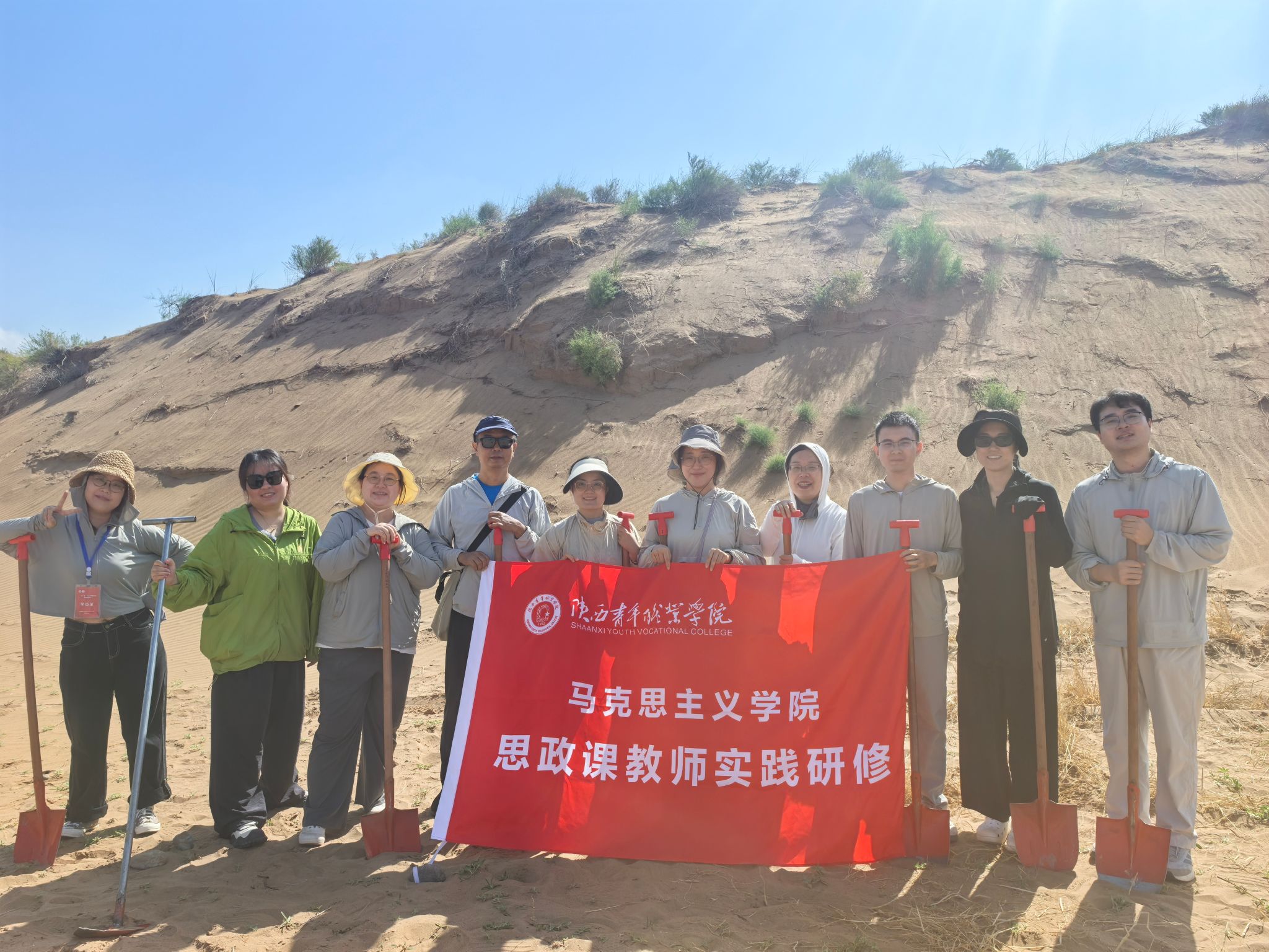 马克思主义学院高度重视此次培训,参训教师严守纪律、协作共进,展现了良好风貌。沉浸式、体验式学习不仅让教师感悟到治沙精神、长征精神与丝路文明互鉴内涵,提升了理论素养、坚定了践行“两山”理念的信念,更增进了团队沟通、凝聚了教学科研合力。未来,马克思主义学院将把研修所得转化为教学动力,内容创新形式创新,让学生在“行走的思政课”中感悟真理力量、厚植家国情怀,为提升马克思主义理论学科建设水平、助力学校高质量发展奠定基础。(马克思主义学院 供稿)
