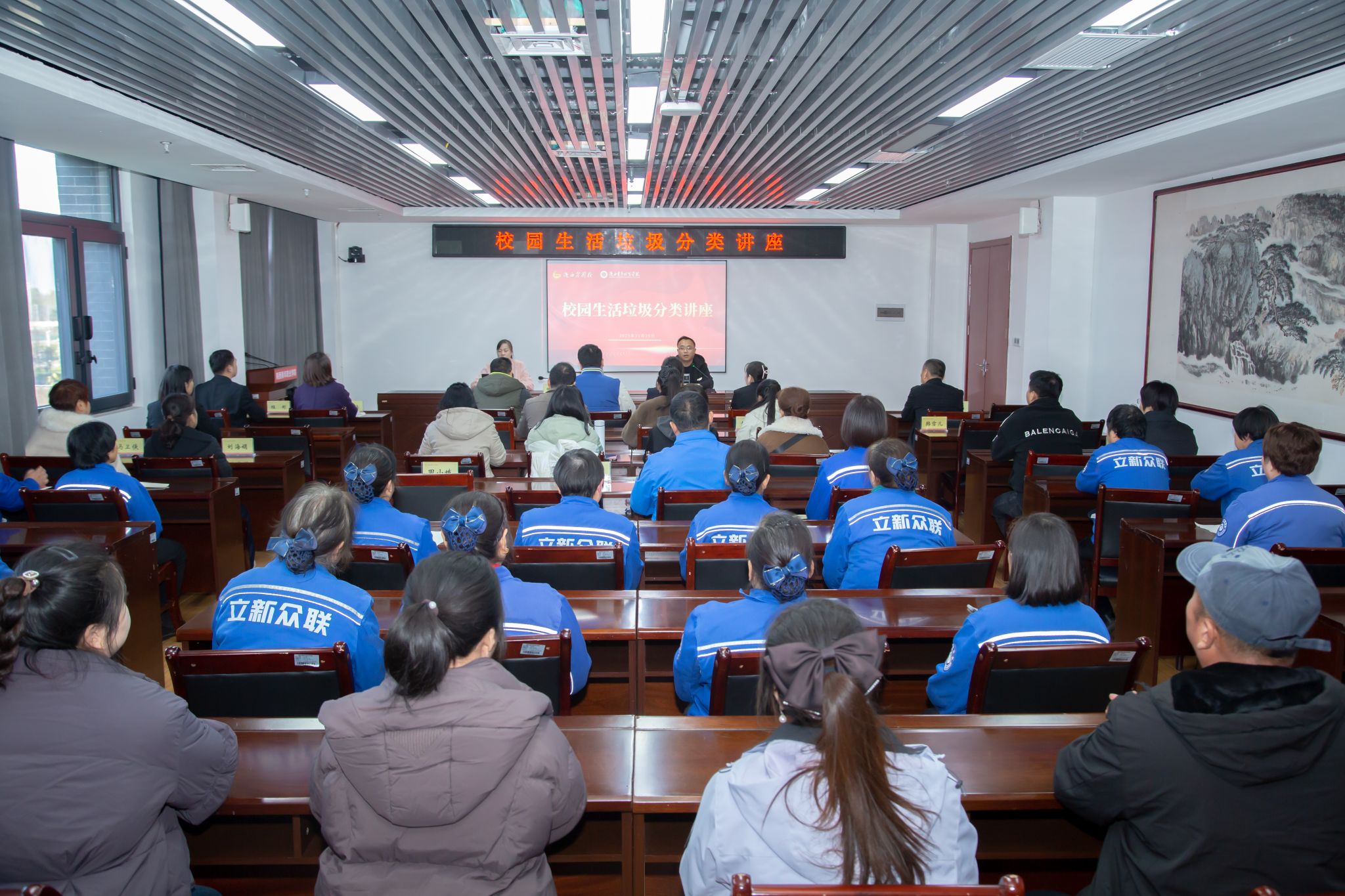 11月20日,为深入推进校园生态文明建设,提升师生垃圾分类意识和实践能力,院产管理处在长安校区举办校园生活垃圾分类专题讲座。物业、食堂、环卫主管、第三方服务单位负责人、学生思政辅导员和生活辅导员代表、全体保洁员工共60余人参加。讲座由院产管理处副处长高路主持。