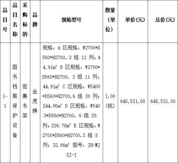 合同包1(密集书架采购):