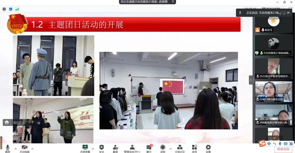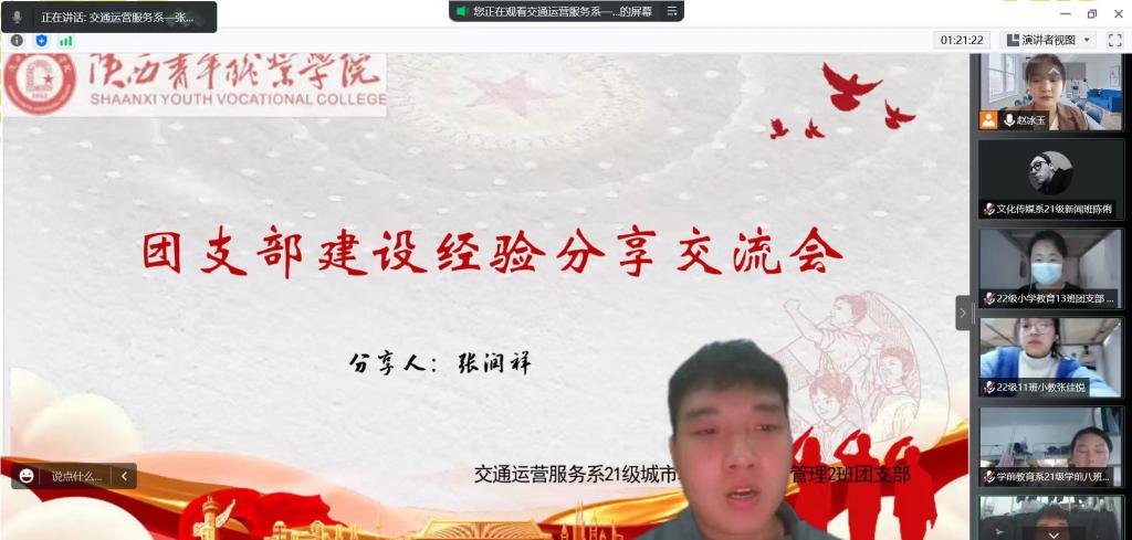 2021级新闻采编与制作团支部书记陈俐、2021级城轨二班团支部书记张润祥、2021级学前八班团支书王凯甜进行了支部建设经验分享,重点介绍了支部团日活动的策划开展、扎实高效做好团务工作、提升支部凝聚力等具体工作的经验做法,帮助与会团支部书记理清了工作思路,提供了良好示范。