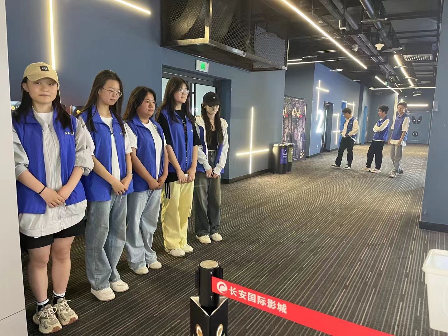 5月11日上午,继续教育学院学生志愿者服务队在专职班主任夏宇的带领下,前往西安市碑林区盛安广场长安国际影城,参加由省残联和省电影局指导,西安市电影公司、陕师大新闻传播学院、陕西白手杖残障服务中心主办的“看见”关爱残障人士无障碍观影公益活动的现场志愿服务活动。