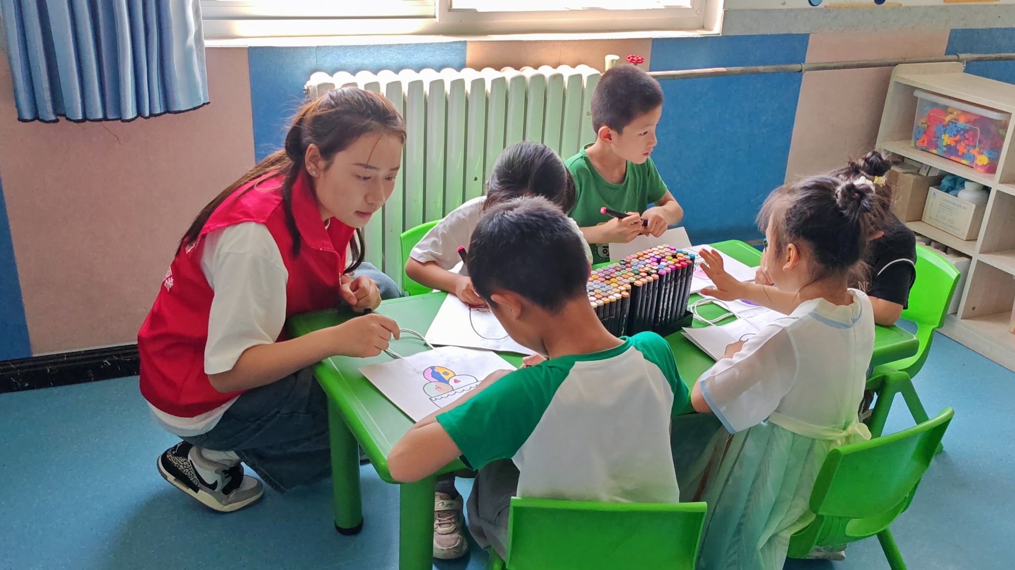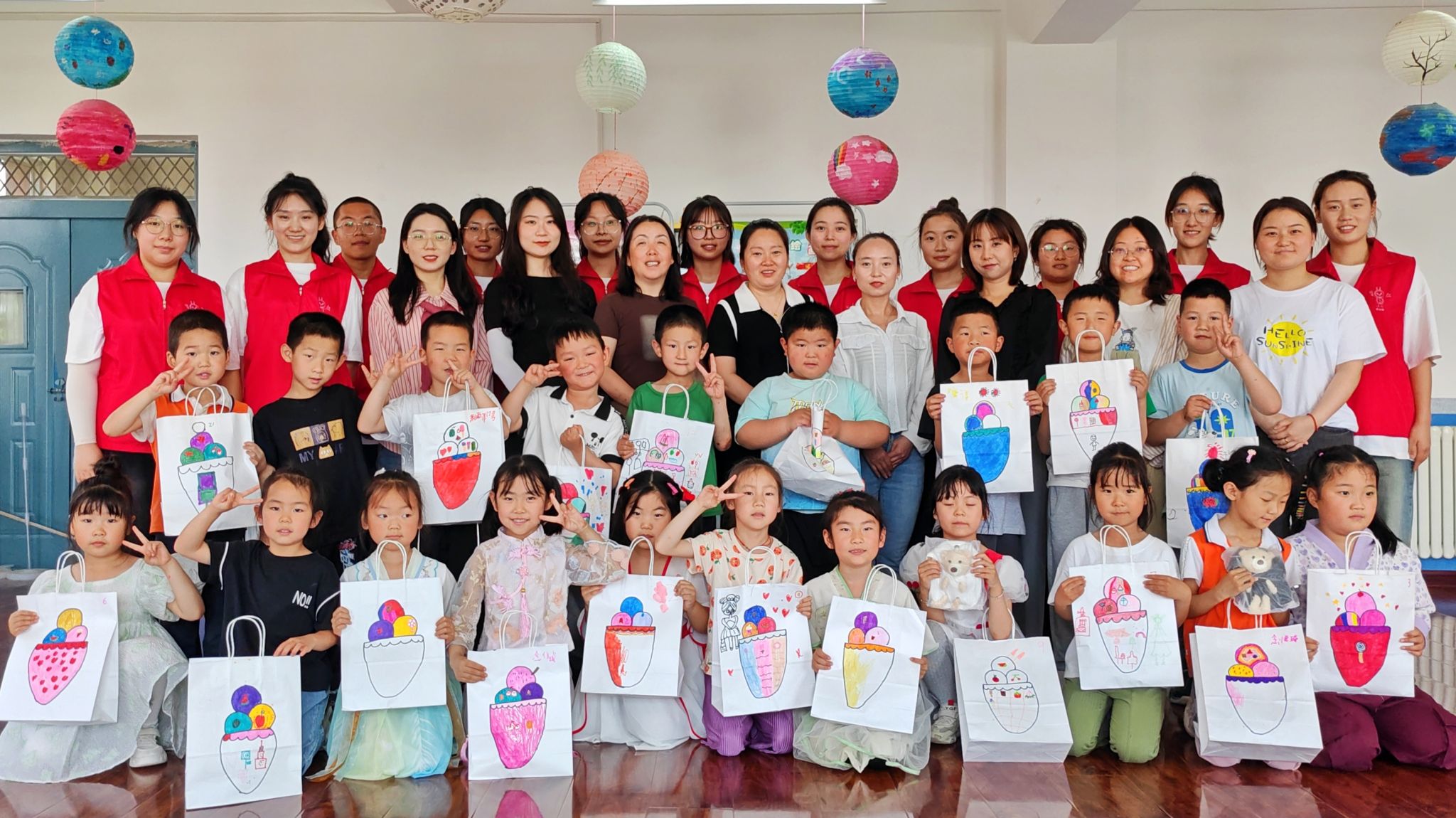 本次活动主要面向念田幼儿园中班、大班小朋友开展,志愿者们结合所学专业知识与幼儿身心发展规律,构建了以美术+体能为主的课程体系。美术课上,志愿者们认真讲解教学内容,通过提问的方式调动小朋友积极性,引导他们用画笔在纸袋子上为冰淇淋涂色,将“樱桃、西瓜、糖豆、巧克力、草莓、电扇”等夏日元素添加在图画上,“小画家”们天马行空、大胆构思创作,展示绘画技能,享受绘画成果的快乐,让他们在发现美、感受美、表现美的同时激发想象、创造潜能。体能课上,志愿者们以带动、互动、感动、活力、安全为原则,充分使用道具彩虹伞,穿插音乐律动带着小朋友们一起走、跑、跳、旋转,“打地鼠、爆米花、风儿吹”等课程内容使得小朋友们在轻松游戏中提升了学习兴趣,不仅锻炼了体魄,活跃了身心,更促进了身体各方面机能的全面发展。同时,在活动开展的过程中,志愿者们引导小朋友们认识情绪、了解自我,学习如何正确表达自己的情感和需求,让小朋友们在轻松愉快的氛围中体验合作的乐趣,学会分享和关爱。最后,所有老师与志愿者们共同为小朋友们赠送了小礼物,祝愿他们健康、快乐成长。