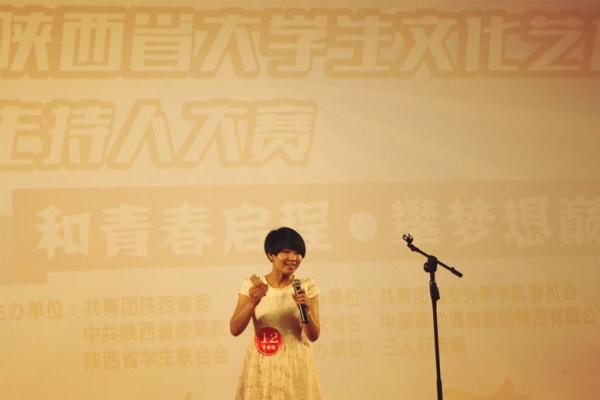 6月13日,由中共陕西省委高教工委、共青团陕西委员会、陕西省学生联合会主办的第二十五届“校园之春”陕西省大学生文化艺术节之主持人大赛举行。由我院文化传媒系主持与播音专业负责人吕炜及专业教师杨琦指导的2013级主播专业学生卢姗荣获专业组三等奖。