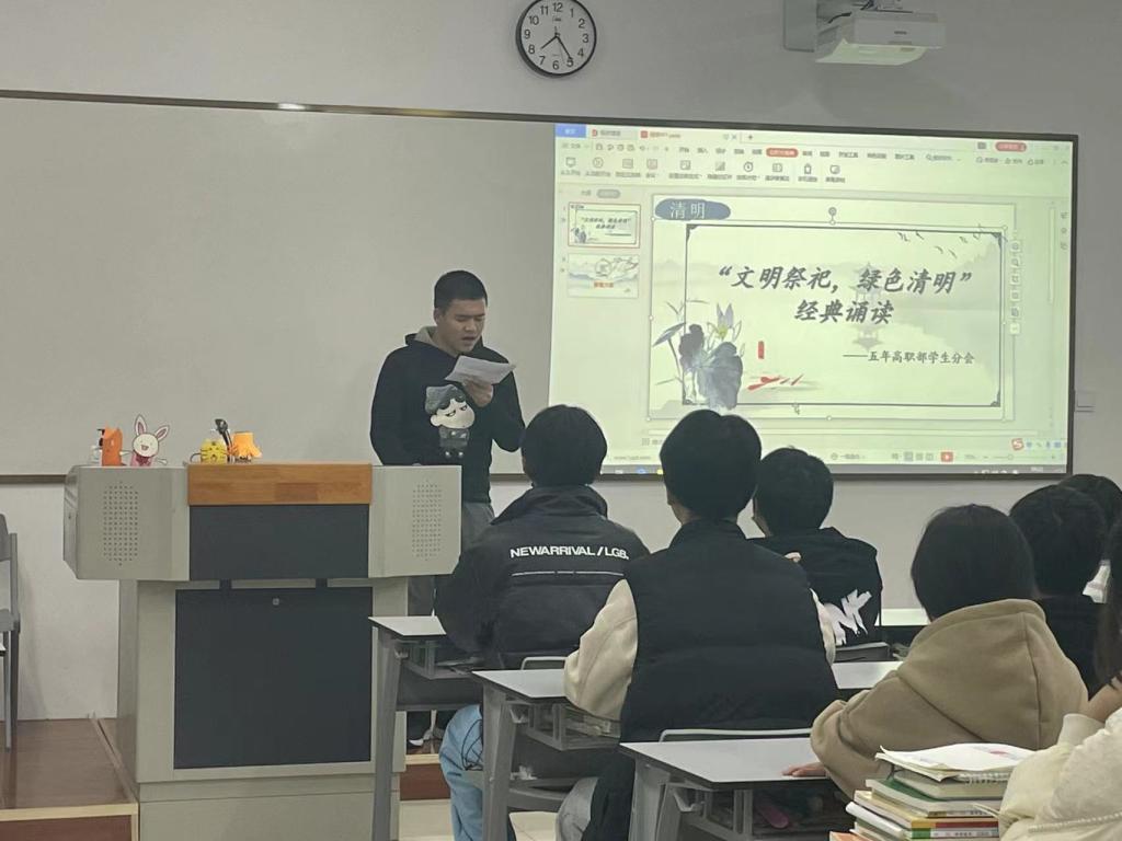 4月4日,五年制高职部举办“文明祭祀、绿色清明”经典诵读活动。
