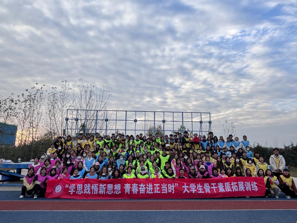 11月25日,团委在长安校区操场举办了2023年大学生骨干素质拓展训练,来自院系各级团学组织推荐的400余名青马骨干全员参加。团委书记王珊、副书记薛江泉参加开营仪式。