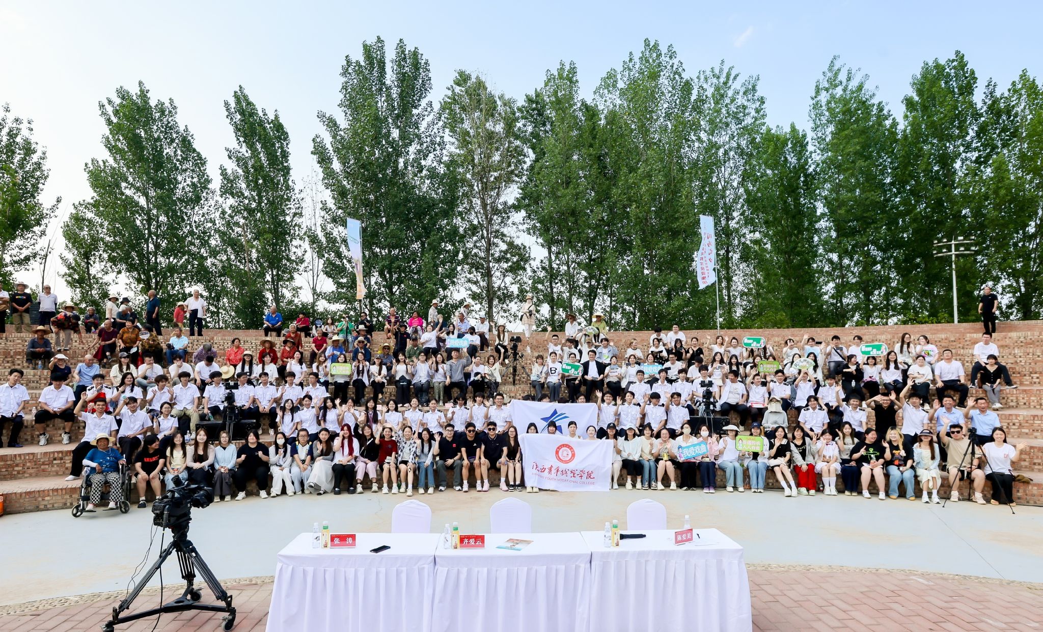 5月28日,由西安市委宣传部、西安市文化和旅游局、西安市文学艺术界联合会指导,西安广播电视台(集团)主办,西安广播电视台(集团)戏剧影视频道承办的2025“大秦之美”戏迷短视频大赛暨自乐班擂台赛在鄠邑终南剧场鸣锣开赛。学前教育系团委书记陈嘉豪带领39名学生代表受邀参与现场活动录制,以青春视角诠释传统戏曲魅力。